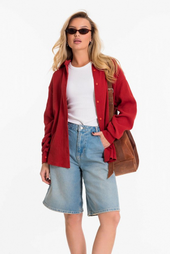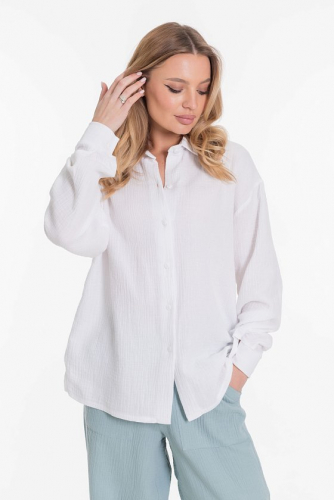 Женская рубашка — отличный выбор для повседневной носки. Она изготовлена из мягкого, лёгкого натурального материала — муслина. Рубашка имеет длинный спущенный рукав и застёжку на пуговицы. Воротник на отрезной стойке придаёт модели элегантность. В боковых швах есть небольшие разрезы, которые добавляют изюминку в дизайн. Такая однотонная рубашка идеально подойдёт для прогулок, отдыха или неформальных мероприятий. Она выполнена из качественного материала, который хорошо пропускает воздух и обеспечивает хорошую вентиляцию.