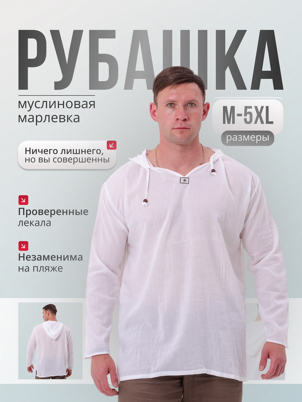 Рубашка марлевая с капюшоном взрослая
