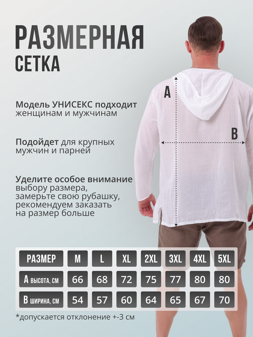 Размеры: M, L, XL, 2XL, 3XL, 4XL, 5XL