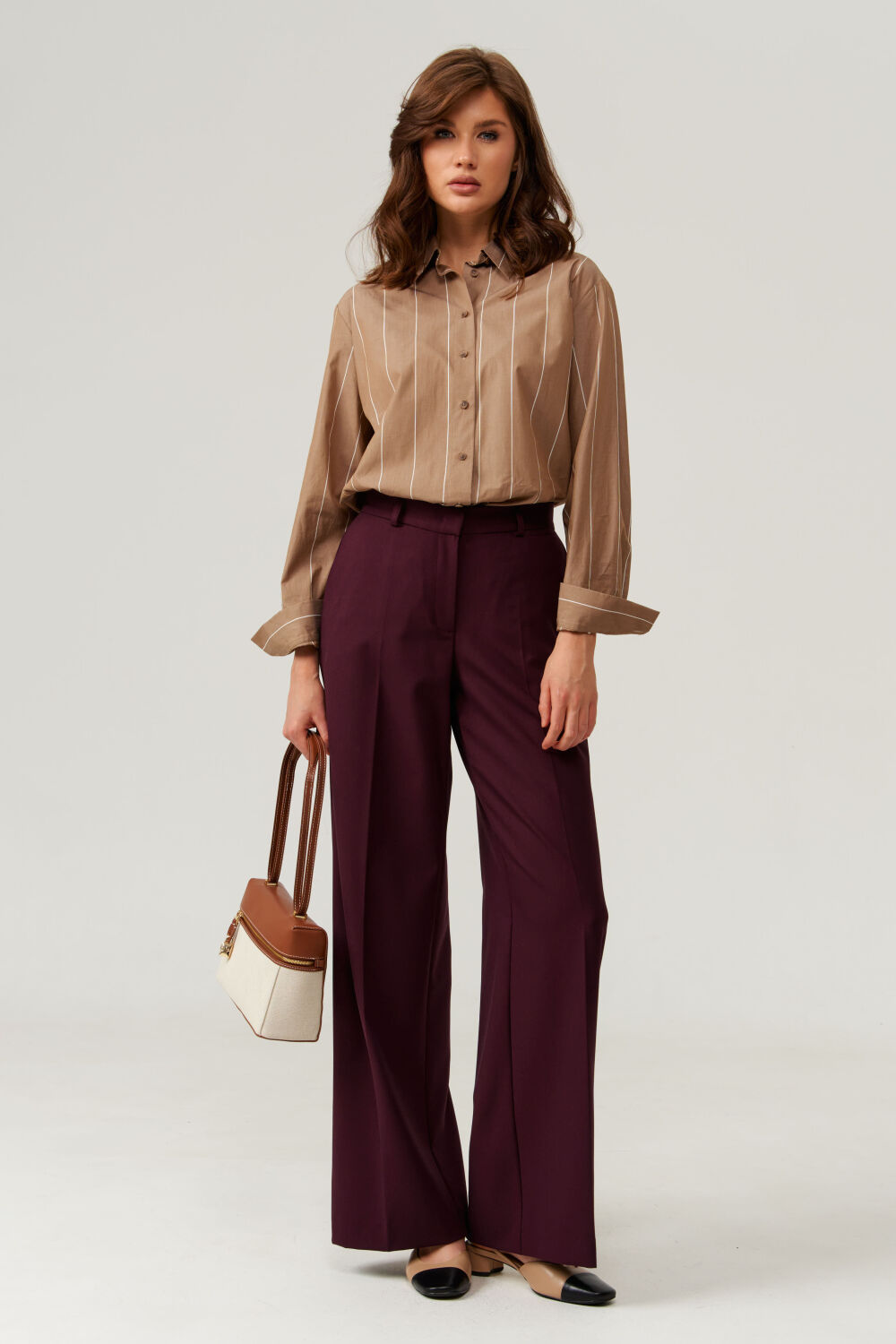 Блузка женская из хлопчатобумажной ткани для повседневной носки прямого силуэта. Застежка в блузке центральная бортовая на обметанные петли и пуговицы. Спинка имеет отрезную кокетку. Горловина обработана рубашечным воротником с отрезной стойкой. Рукава втачные длинные, низ рукава обработан притачной манжетой с застежкой на одну обметанную петлю и одну пуговицу. Стальная блузка, которая обязательно осчастливит вас своим чудесным видом, а главная данная блузка будет очень практичная и удобная.
