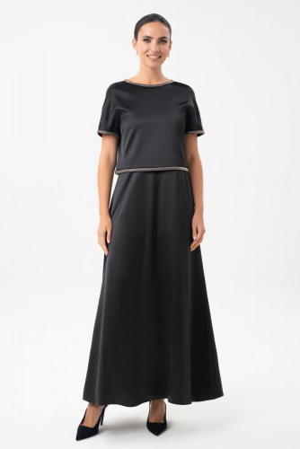 Перед с нагрудными вытачками, идущими от боковых швов. С талиевыми вытачками по переду и спинке.