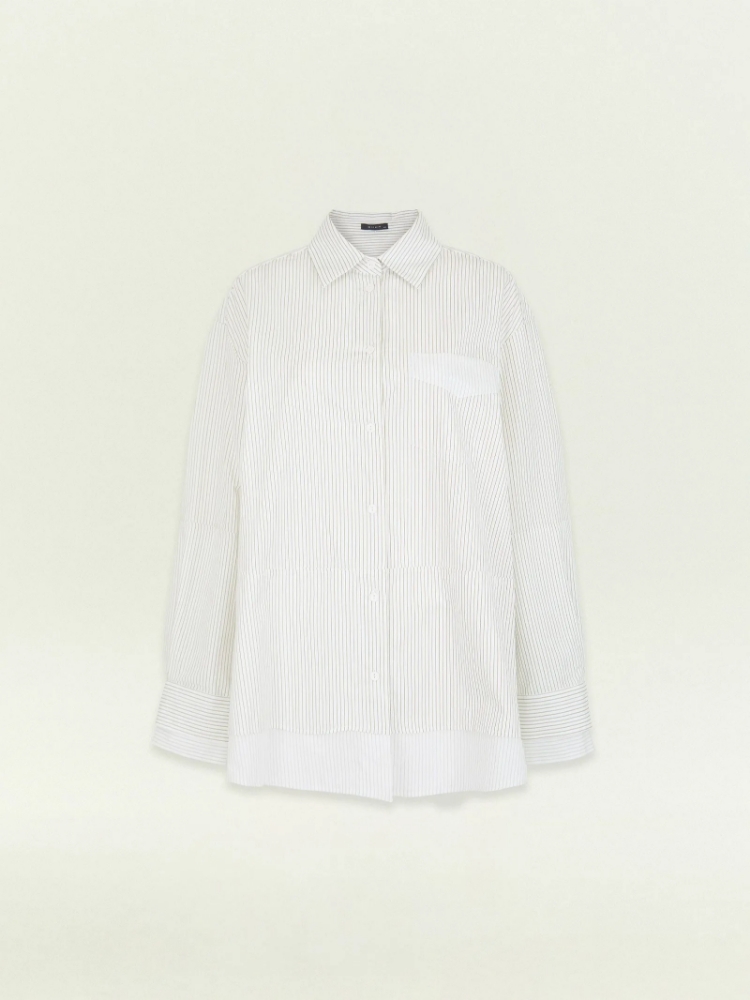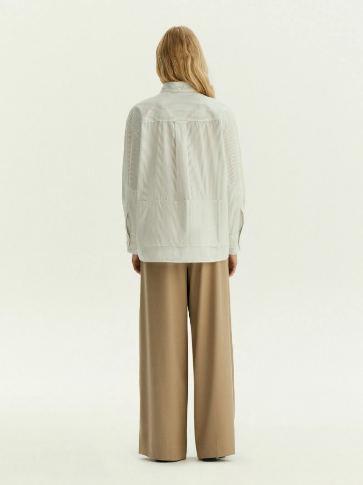 Трендовая рубашка для креативных образов в офис и не только. Рубашка поддерживает игру с деконструированными формами. Эффекты наложения и второго слоя, дополнительные слои по низу и на рукавах, фальш-карман делают аутфиты интереснее. Модель имеет свободные рукава, кокетку со складкой и петлю на спинке. Рубашку украшает не выходящий из моды принт — полоска, в этом сезоне она снова популярна. Изделие выполнено из натурального хлопка
