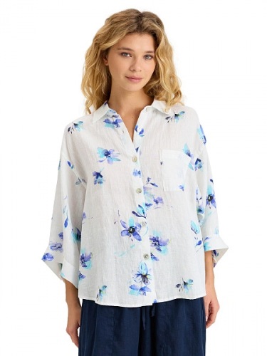Рубашка женская c широкими рукавами серии LINEN, цвет паттерн flowers