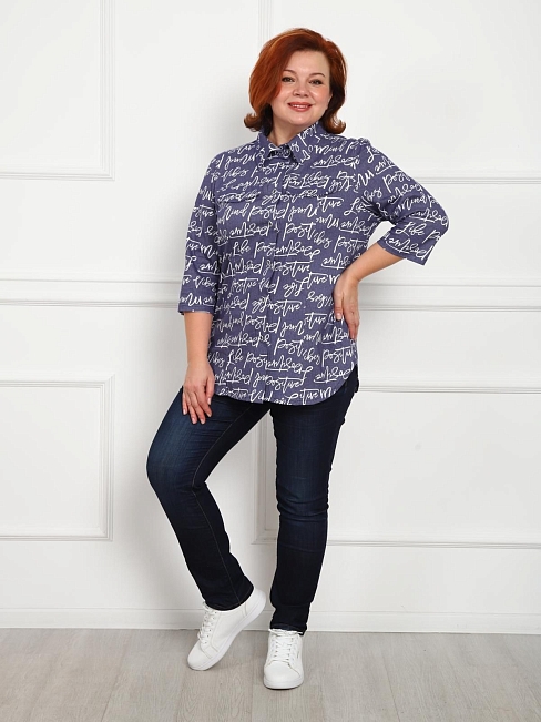 Универсальная хлопковая рубашка с рукавом 3/4. Свободный крой и рельефы на груди обеспечивают хорошую посадку. Закругленный низ изделия закрывает бедра.