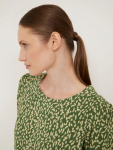 Элегантный летний сарафан цвета хаки с принтом. Комфортен к телу, выполнен из вискозы, без подкладки. Стильные V-образные вырезы спереди и сзади делают образ по-настоящему летним. Лаконичный прямой силуэт вносит лёгкость. Сзади предусмотрен разрез для свободы движения. Сарафан идеален для атмосферных прогулок по набережной. Его также можно надеть в офис под деловой жакет, дополнив изящным поясом