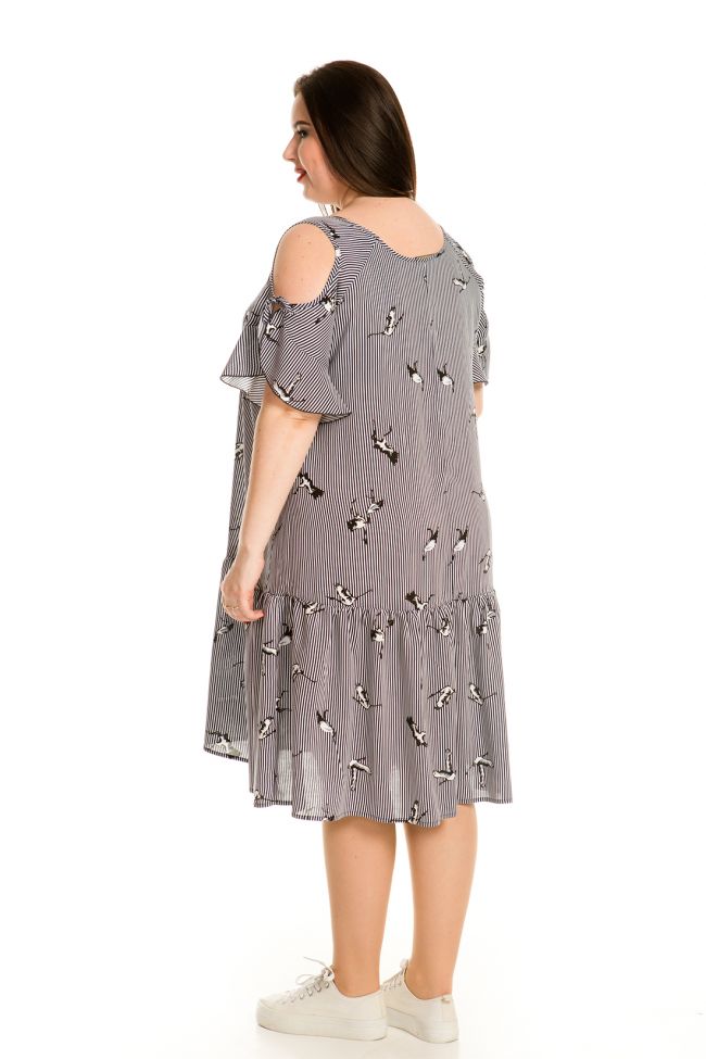 темно-синий Современный сарафан прямого силуэта из хлопковой штапельной ткани с нежным принтом. Вырез горловины обработан окантовкой. Рукава-реглан с воланом по низу. Низ с широким притачным воланом. Модель прекрасно подходит модницам с любыми формами. Отличный выбор для создания уютного повседневного образа.