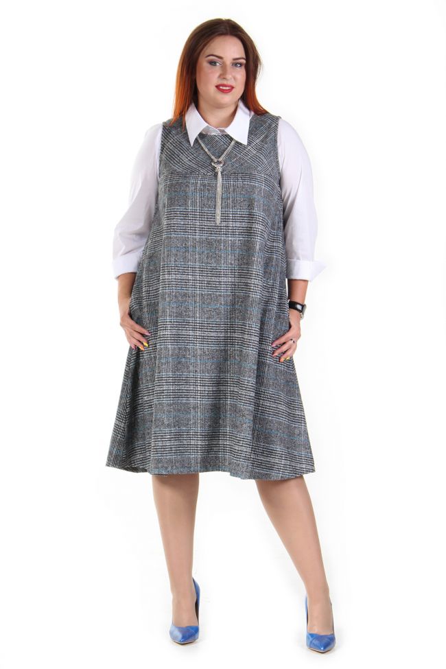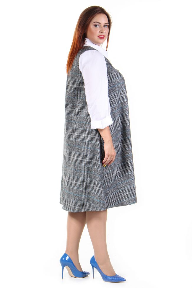 серый Стильный сарафан свободного силуэта. Какетка по переду и спинке дает идеальную посадку на любую фигуру. Карманы в боковом шве. По среднему шву спинкеи застежка на петли-пуговицы. Круглая горловина и пройма обработана внутренней оконтовкой. К сарафану подойдут класические рубашки и водолазки ярких расцветок. Образ можно дополнить как аксессуарами, так и локоничной брошью. Отличный выбор делового стиля.