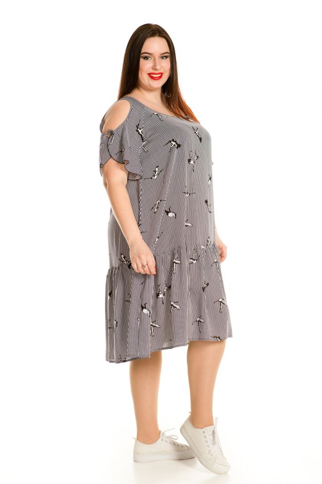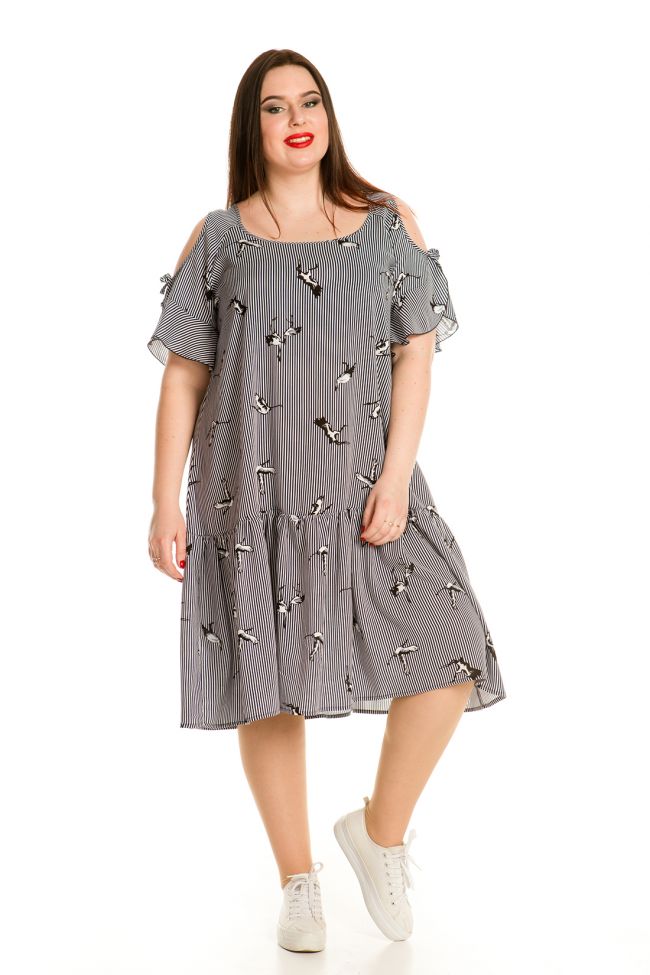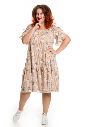 темно-синий Современный сарафан прямого силуэта из хлопковой штапельной ткани с нежным принтом. Вырез горловины обработан окантовкой. Рукава-реглан с воланом по низу. Низ с широким притачным воланом. Модель прекрасно подходит модницам с любыми формами. Отличный выбор для создания уютного повседневного образа.