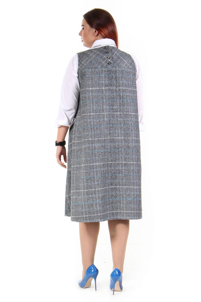 серый Стильный сарафан свободного силуэта. Какетка по переду и спинке дает идеальную посадку на любую фигуру. Карманы в боковом шве. По среднему шву спинкеи застежка на петли-пуговицы. Круглая горловина и пройма обработана внутренней оконтовкой. К сарафану подойдут класические рубашки и водолазки ярких расцветок. Образ можно дополнить как аксессуарами, так и локоничной брошью. Отличный выбор делового стиля.
