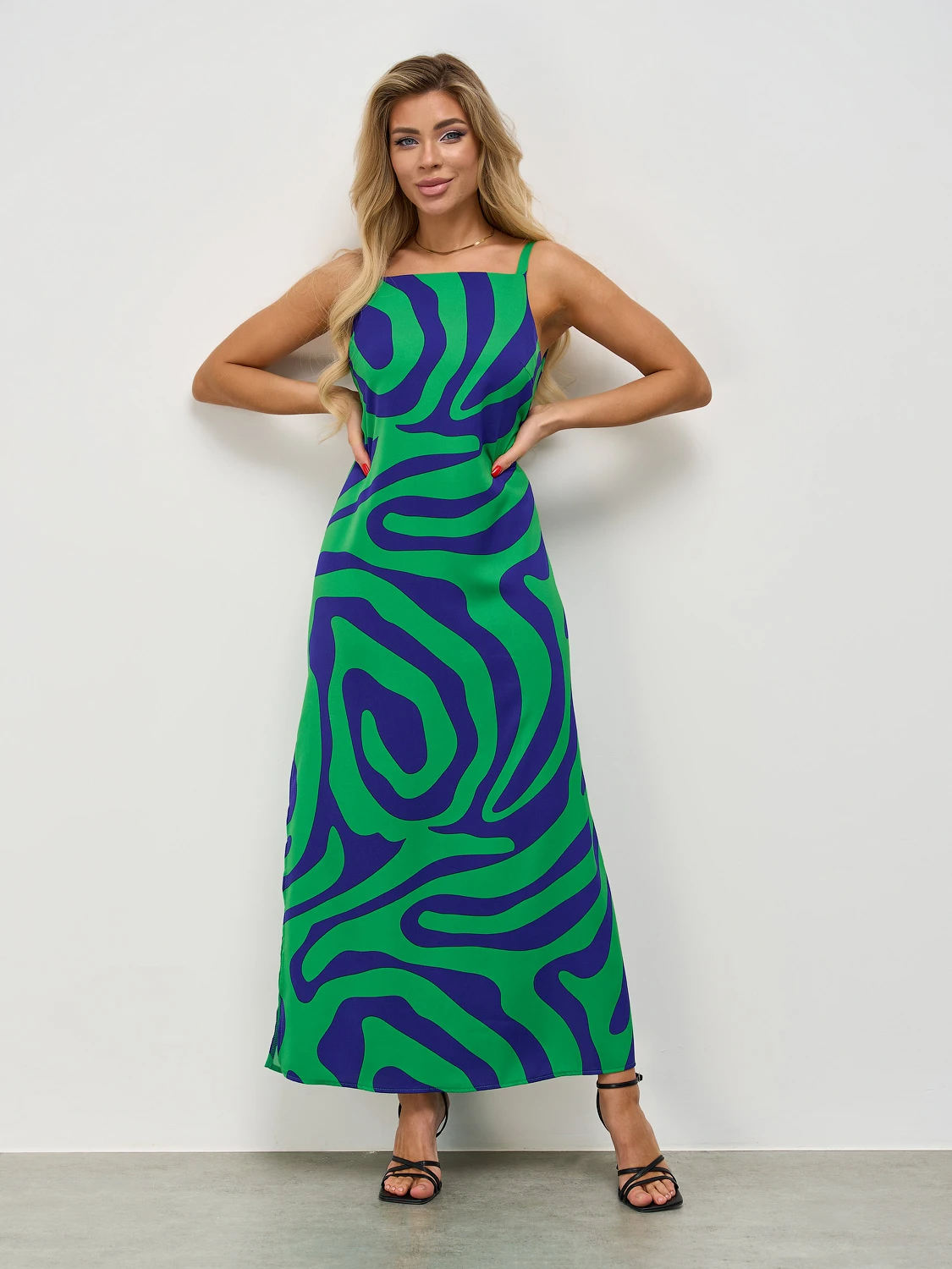 Сарафан прямого кроя на бретелях.