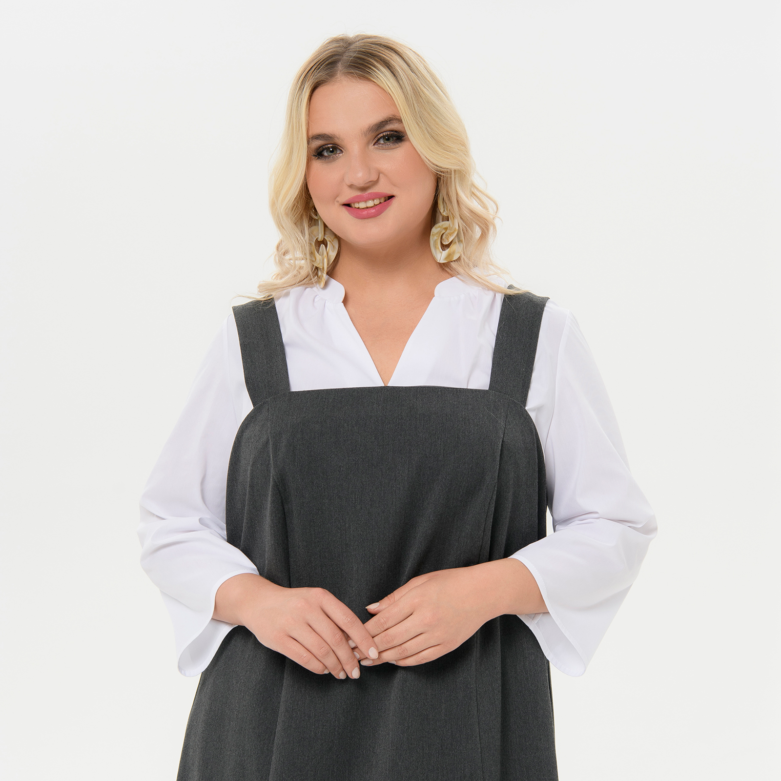 Серый Сарафан свободный из плотной костюмной ткани с эластаном.
