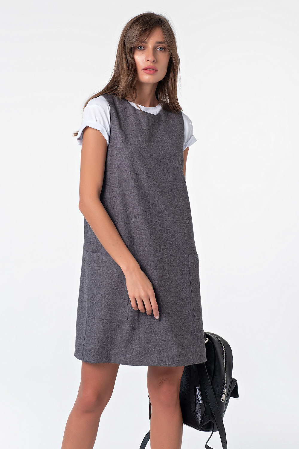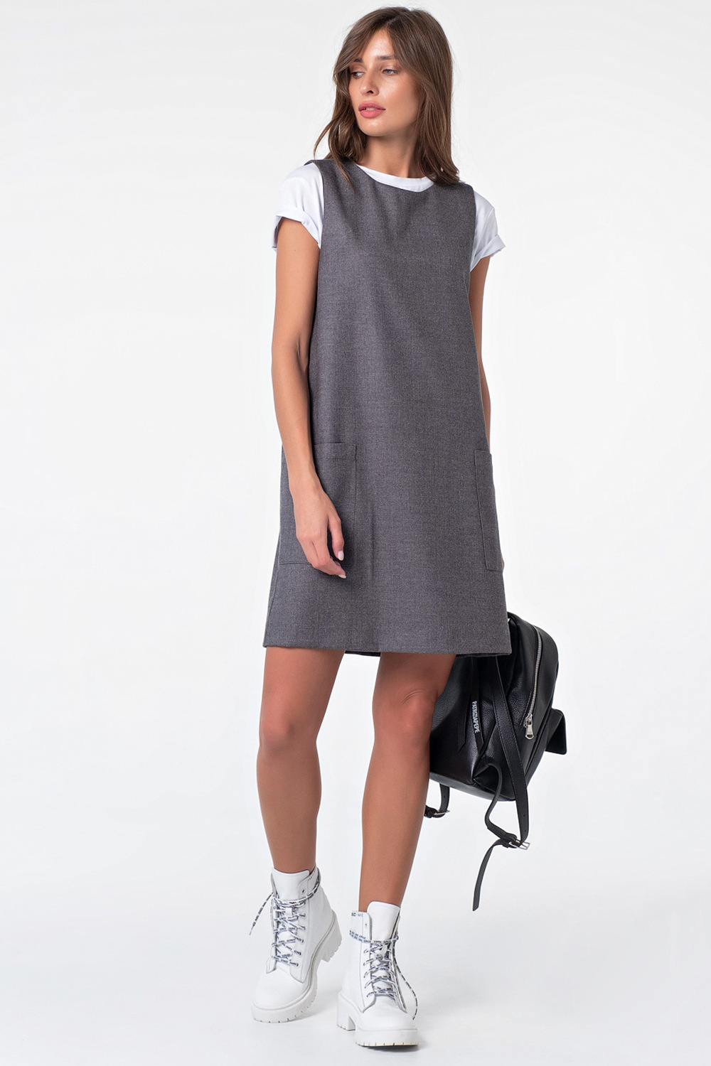 ст. цена2371руб.! Сарафан короткий свободный темно-серый