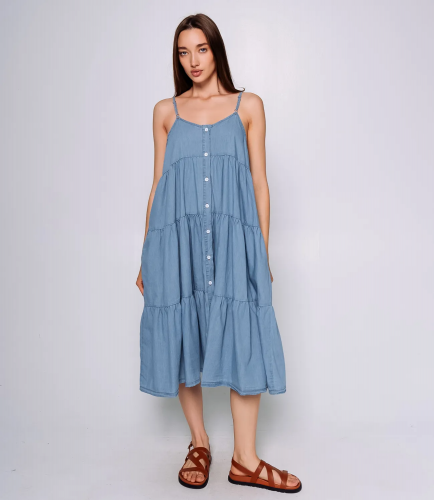 Сарафан — это изысканная часть гардероба, которая подчеркивает женственность и элегантность каждой девушки. Эта модель подойдет для летнего сезона, создавая легкий и воздушный образ, идеально вписывающийся в атмосферу солнечных дней. Сарафан подвергся тщательной разработке и станет настоящей находкой для ваших клиентов, которые ценят гармонию качества и стиля. Изготавливаемый из смеси 65% хлопка и 35% полиэстера, этот удлиненный сарафан обеспечит максимальный комфорт и дышащие свойства, сохраняя при этом яркость цвета и форму даже после множества стирок. Тонкие бретели добавляют легкости и сексуальности, а кроенный фасон позволяет подчеркнуть достоинства фигуры. Сарафан с идеальной длиной и изящными линиями позволяет создавать множество стильных образов. Он прекрасно сочетается как с обувью на каблуках для вечерних выходов, так и с сандалиями для прогулок по городу. Этот универсальный вариант уже завоевал любовь покупательниц, которые ищут простоту и элегантность в одном изделии. Обратите внимание на цвет и фактуру: они тщательно подобраны и полностью соответствуют фотографиям в каталоге. Мы также предоставили таблицу размеров на сайте, чтобы ваши клиенты могли легко определиться с выбором и быть уверенными в своем выборе. Предложенная нами цена является доступной для оптовых закупок, что делает этот сарафан отличным дополнением к вашему ассортименту. Не упустите возможность подарить своим покупателям шанс выглядеть неповторимо и стильно в этом великолепном сарафане! Рост модели 164, 83-61-89.