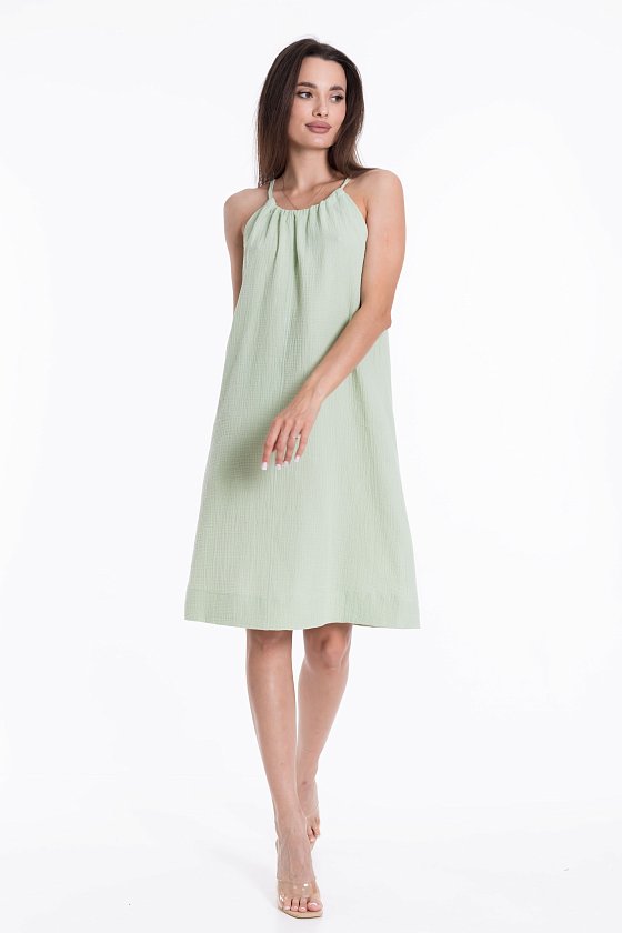 Сарафан летний из муслина. Свободный силуэт, в кулиску вставлен шнур из основного полотна, который заменяет бретели.