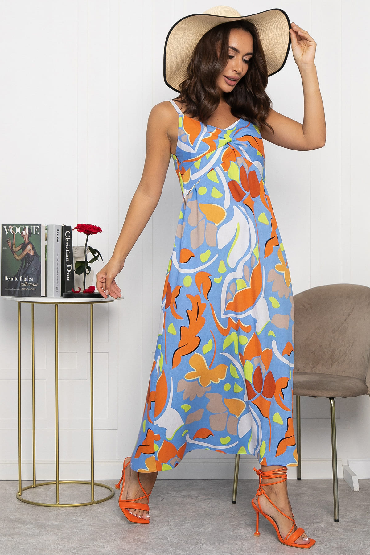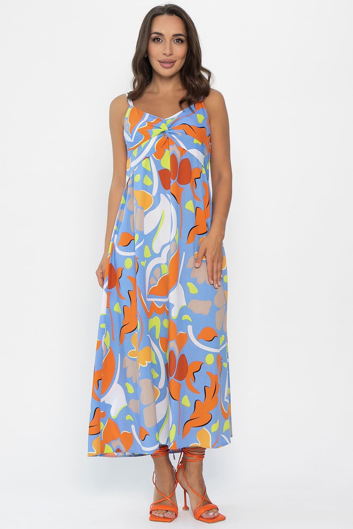 Элегантный женский сарафан создан для подчеркивания вашей красоты. Отделка переда лифа оформлена интересной драпировкой, а легкий материал дарит комфорт и свободу движений в жару. Тонкие бретели добавляют романтичности, а яркий цветочный принт — летнего настроения. Лямки не регулируются. Идеальный выбор для тех, кто хочет выглядеть элегантно и чувствовать себя свободно этим летом!