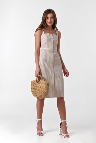 ст. цена2125руб.! Сарафан на пуговицах спереди с открытой спиной в полоску на бежевом