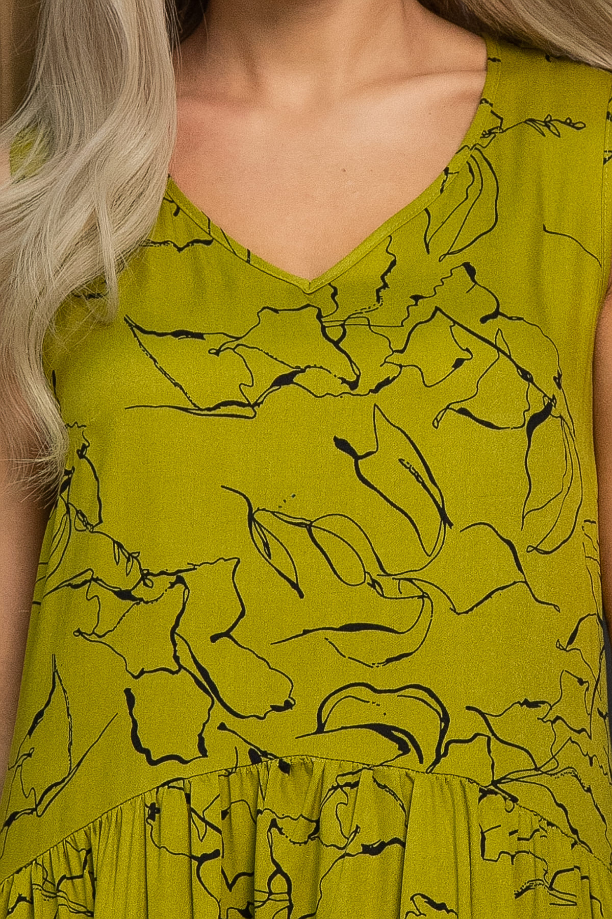 Платье свободного силуэта без рукавов идеально для теплых дней. Легкое и натуральное, оно гармонично сочетается как с каблуками, так и с кедами. Удобные боковые карманы позволяют носить с собой мелочи. Юбка собрана в драпировку, что даёт свободу в бёдрах и движении. Завершает образ V-образный вырез горловины.