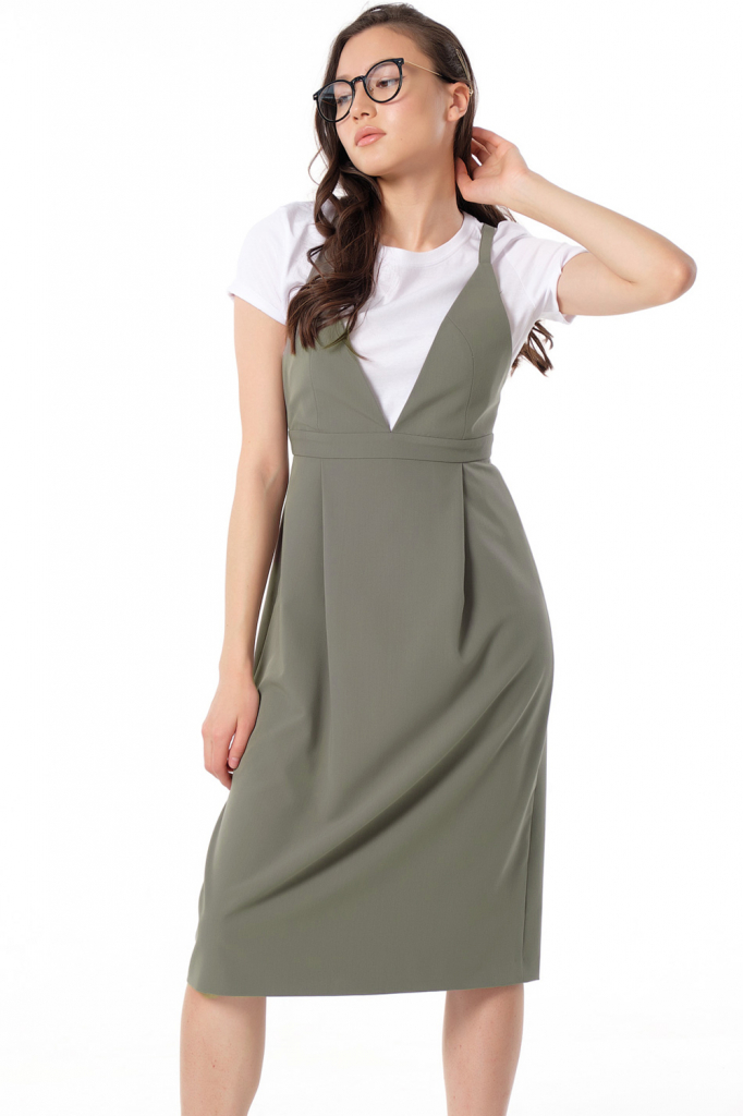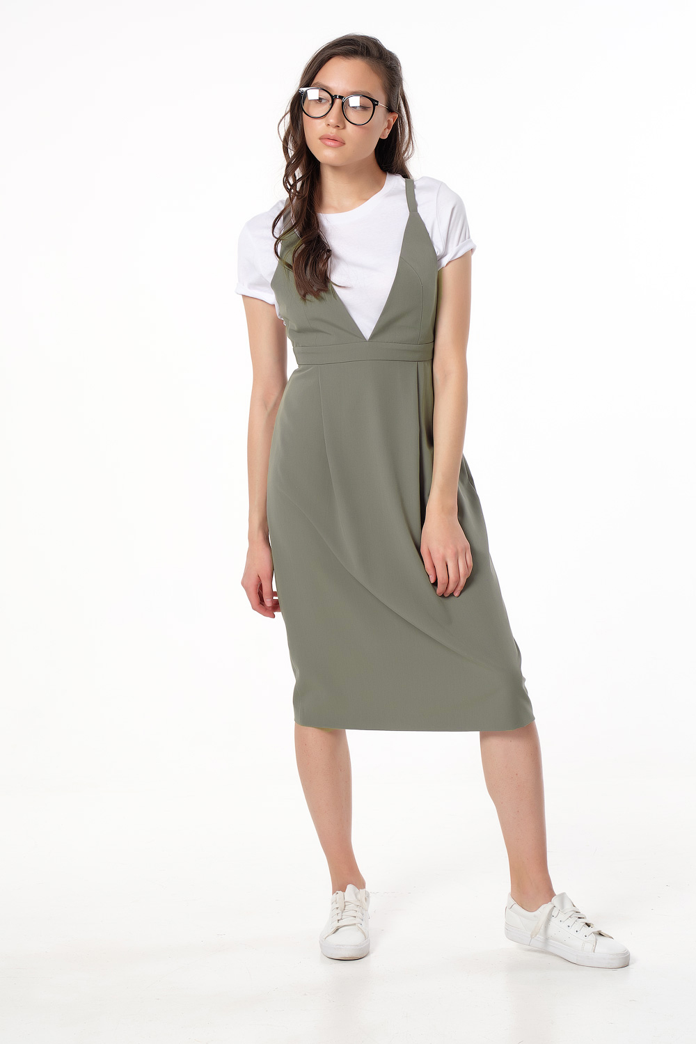 ст. цена1971руб.! Сарафан офисный миди под блузку хаки