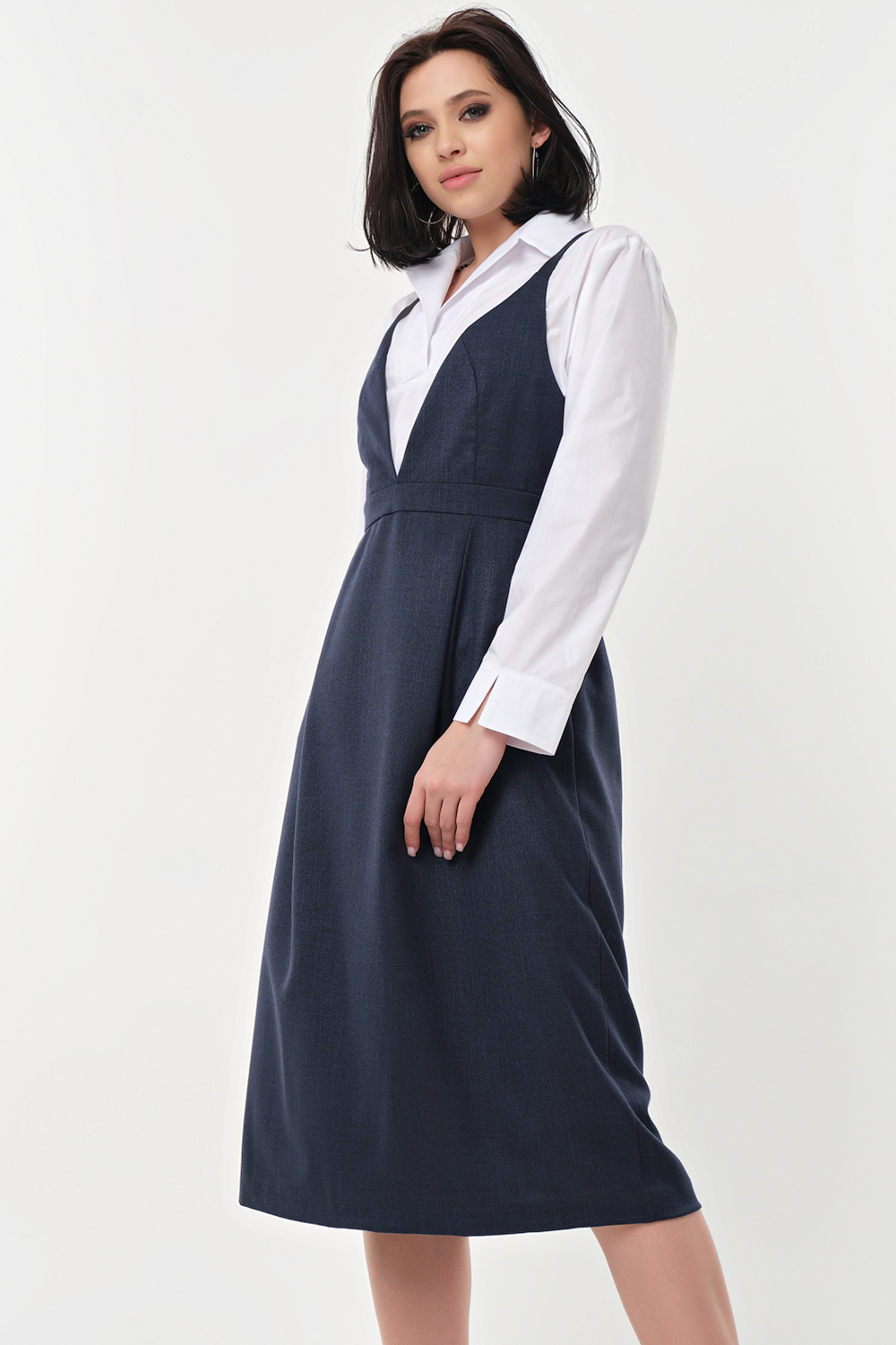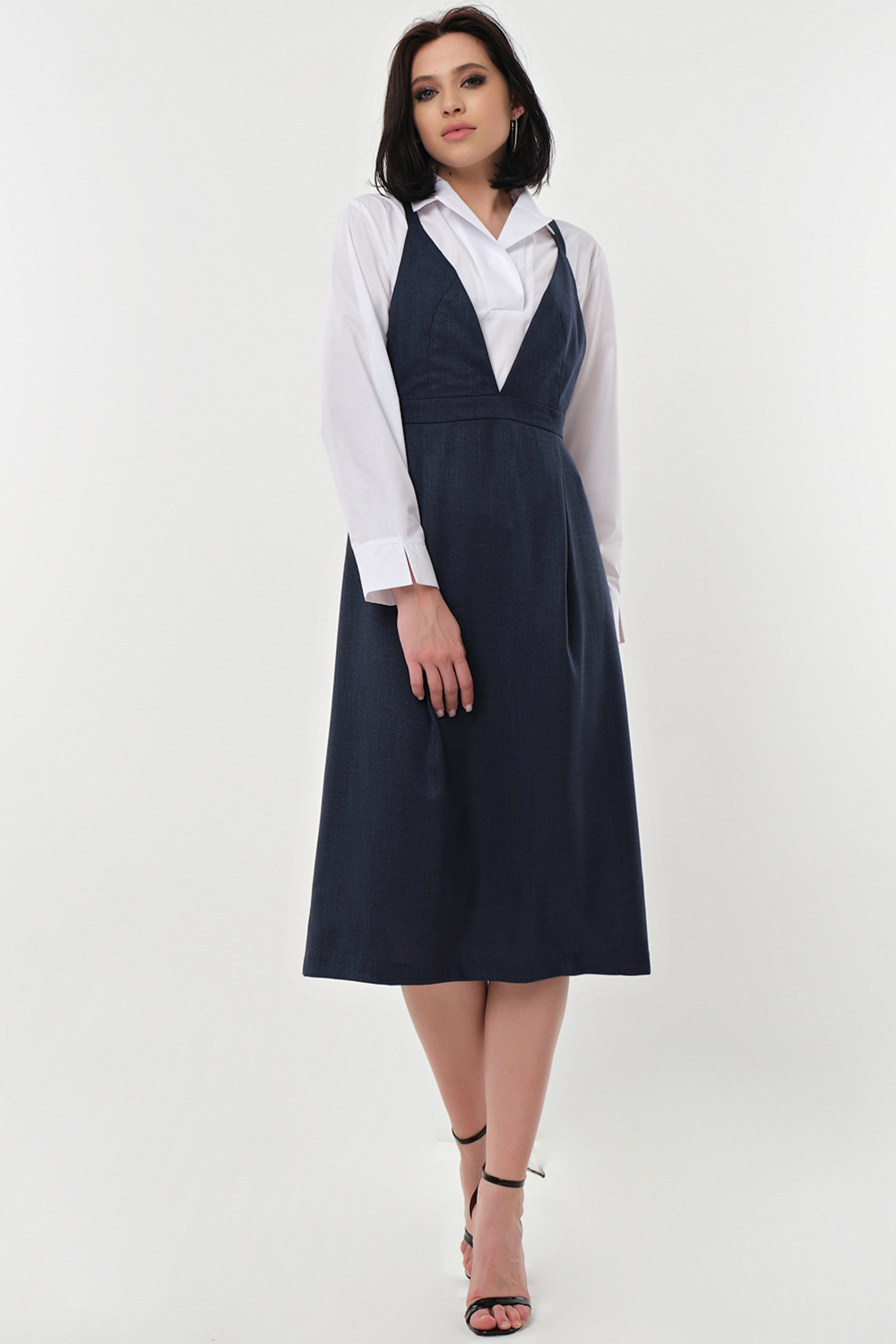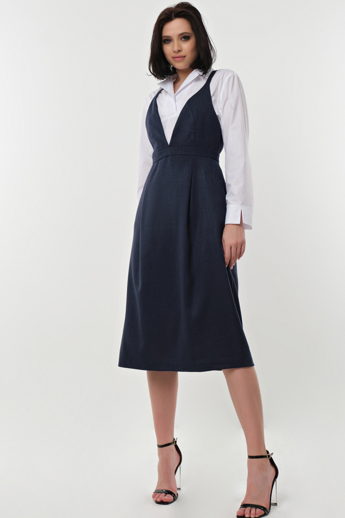 ст. цена2365руб.! Сарафан офисный миди под блузку темно-синий
