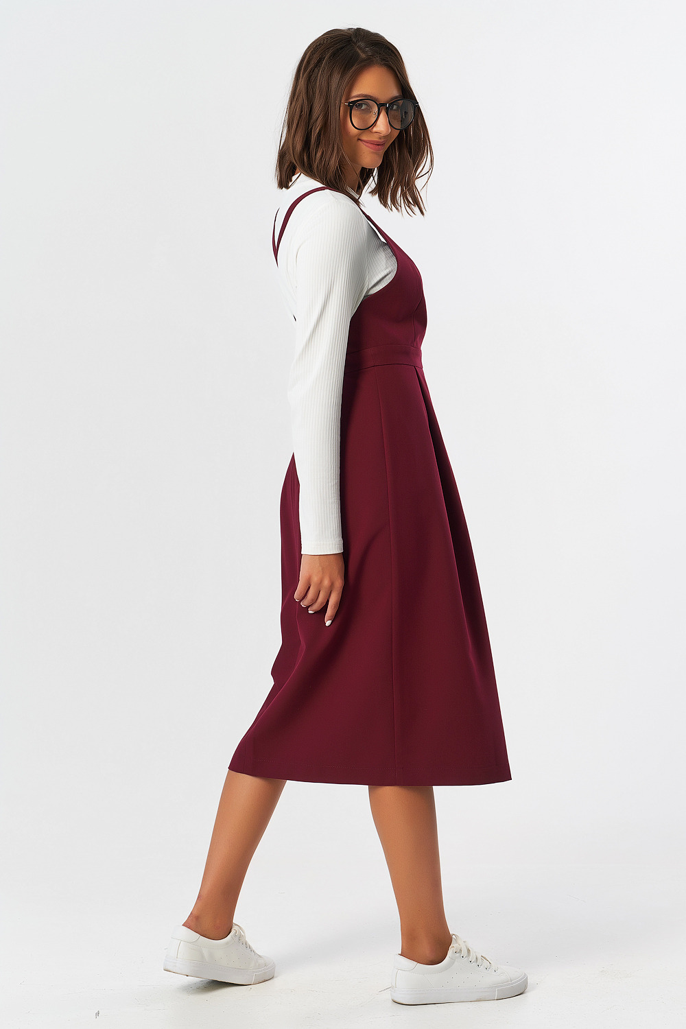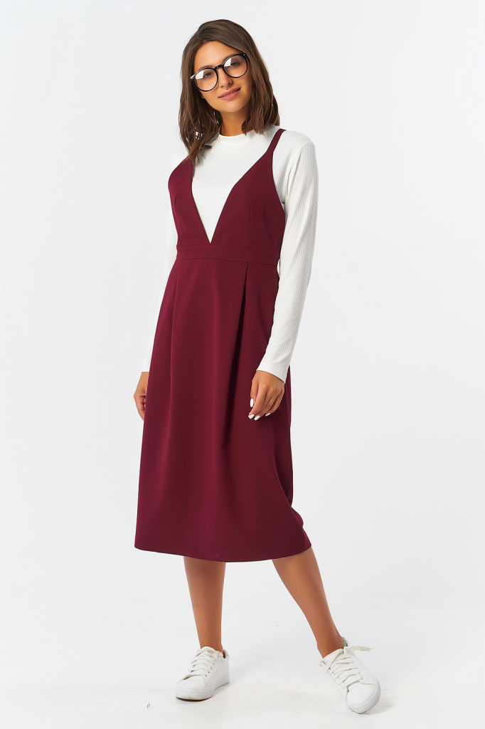 ст. цена1971руб.! Сарафан офисный миди под блузку винный