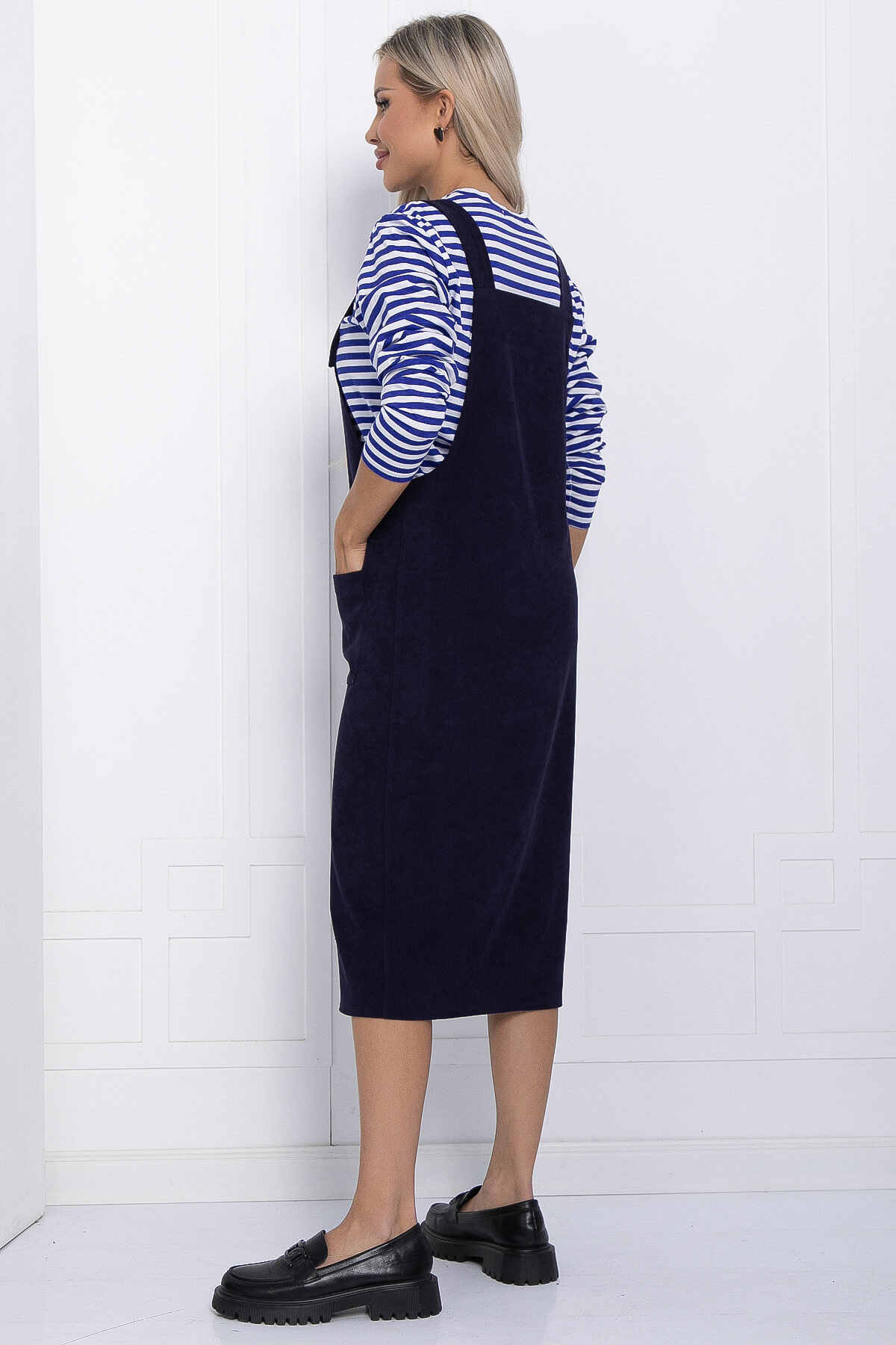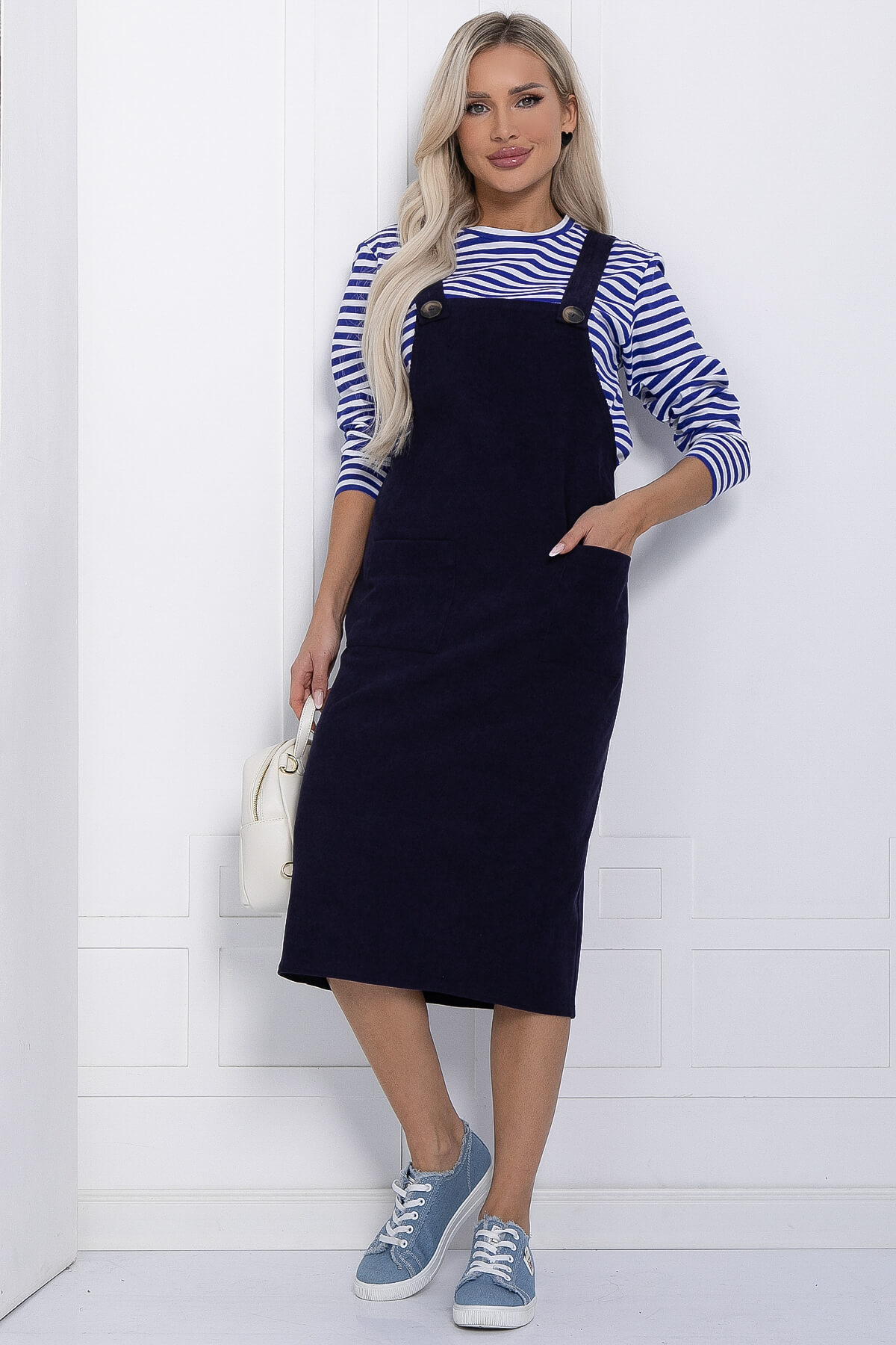 Классический сарафан на бретелях представлен в длине миди, что создает эффектную и гармоничную силуэтную линию. Выполнен из микровельвета, этот сарафан обеспечивает мягкость и комфорт при носке. Накладные карманы добавляют удобства и уникальности внешнему виду, а широкие бретели позволяют создать акцент на плечах и подчеркнуть вашу женственность, на них выполнены по две петли для регулировки длины сарафана. Однотонный дизайн предлагает безграничные возможности для создания различных образов на работу или для делового события в офисе. Вы можете дополнить его аксессуарами или просто носить в классическом варианте.