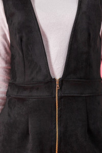 Женский замшевый сарафан с V-образным вырезом, длины мини. Отлично будет смотреться с водолазкой или рубашкой. Идеально дополнит базовый гардероб, с ним Вы сможете составить много новых образов.