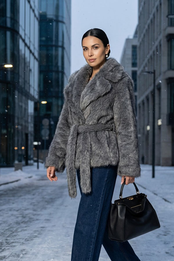 Представляем вам трендовую укороченную куртку, выполненную из высококачественного искусственного меха. Ее прямой силуэт выглядит элегантно и универсально, а идущий в комплекте пояс позволит вам создать более женственный образ, акцентировав линию талии. Куртка застегивается на стильную клипсу, а отложной воротник из того же меха дополнен скрытой пуговицей для дополнительной фиксации в холодную погоду.