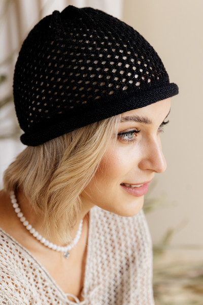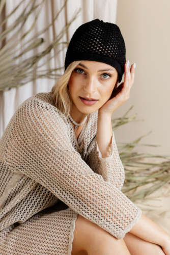 Шапочка лен 100%, ажур сетка, по краю валик.