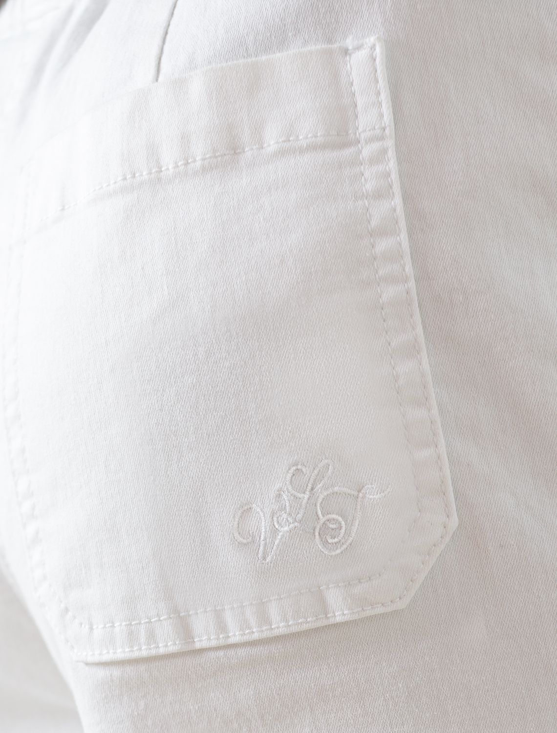 Широкие джинсы белого цвета выполенены из облегченного денима плотностью 8 OZ, они идеально подходят для весны и лета. Особенность модели — пояс на мягкой резинке, который гарантирует удобство в области талии. Джинсы дополнены защипами на поясе, которые формируют актуальный свободный крой. Джинсы палаццо идеально подойдут для девушек и женщин размера plus size (плюс сайз) с широкими бедрами и скроют недостатки, Высокая талия с защипами визуально корректирует фигуру и вытягивает силуэт. Качественная надежная фурнитура делает добавлет образу премиальности. Широкие легкие джинсы не стесняют движений, позволяя чувствовать себя комфортно даже в жаркую погоду. Джинсы палаццо — идеальный баланс между расслабленным стилем и элегантностью, вариант для тех, кто ищетдостойную альтернативу классике на каждый день.