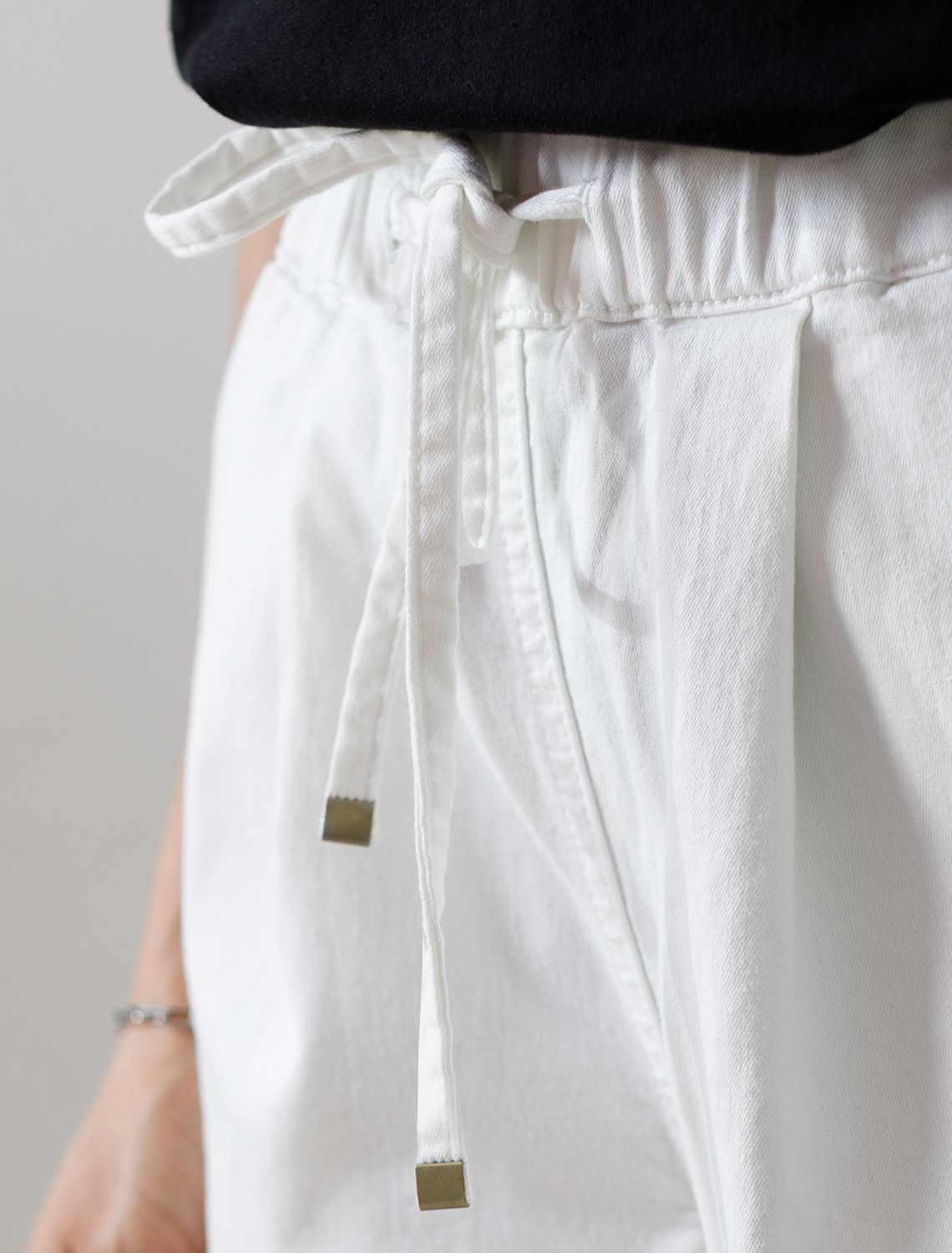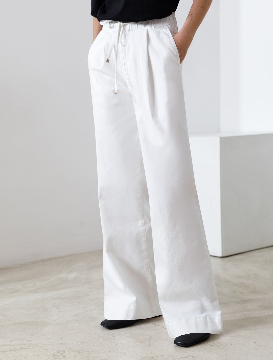 Широкие джинсы с поясом на резинке и с защипами из облегченного денима D54.319 белый