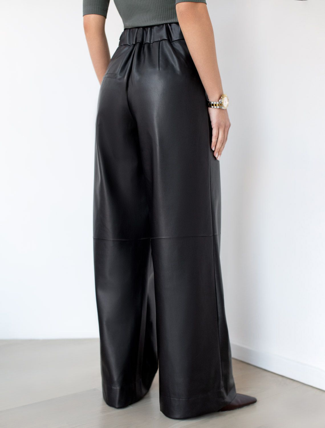 Отзывы и вопросы о товаре «Широкие кожаные брюки-трубы с поясом D24.272 черный»