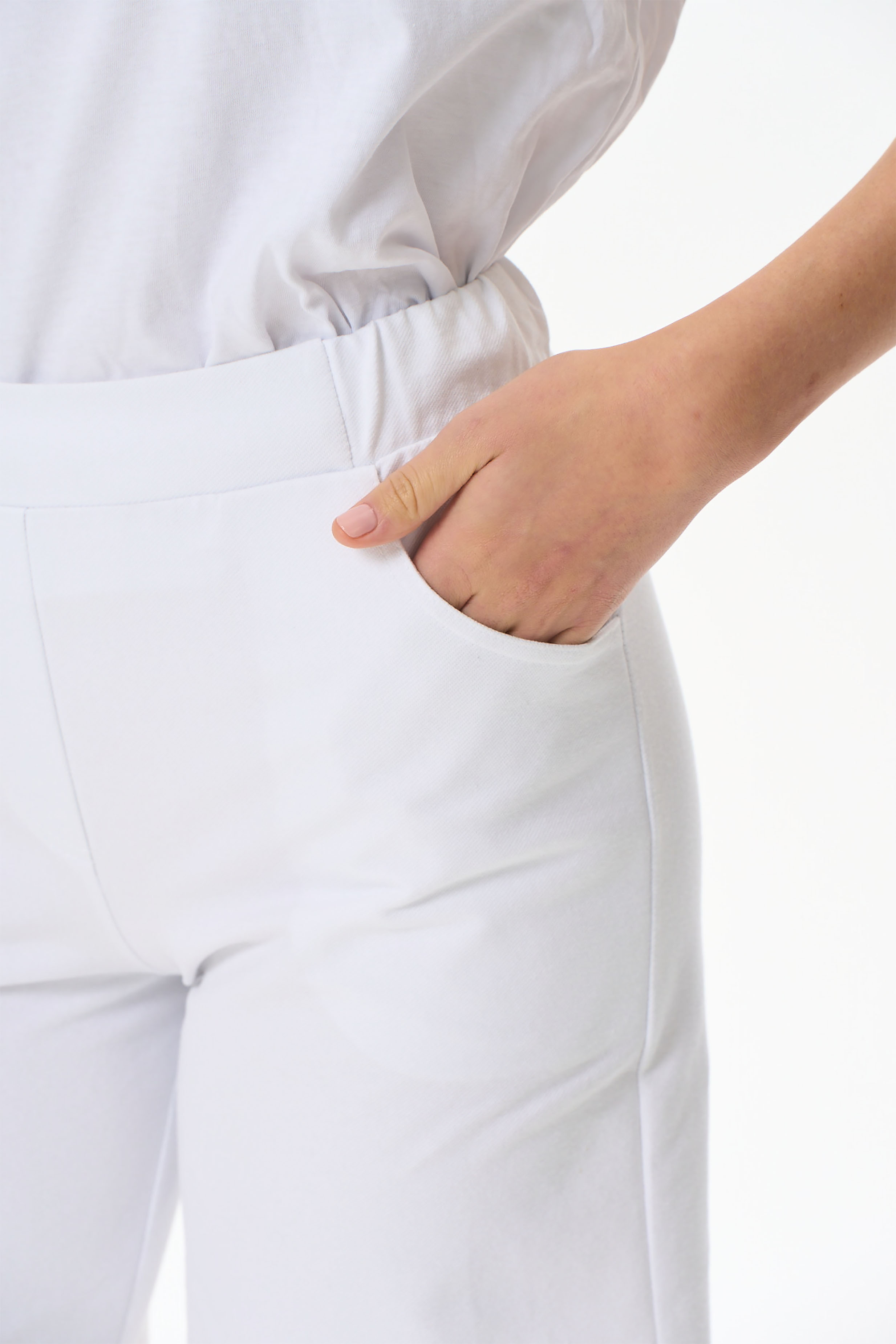 80% хлопок, 14% полиэстер, 6% эластан Летние шорты из джинскота 250 гр в чистом белом оттенке. Модель с комфортным прилеганием и идеальной посадкой. Фигурные карманы, пояс с планкой и эластичной лентой внутри. Универсальная модель для отдыха и путешествий. Длина по боковому шву в 44р - 58 см. Рост модели 175 см.