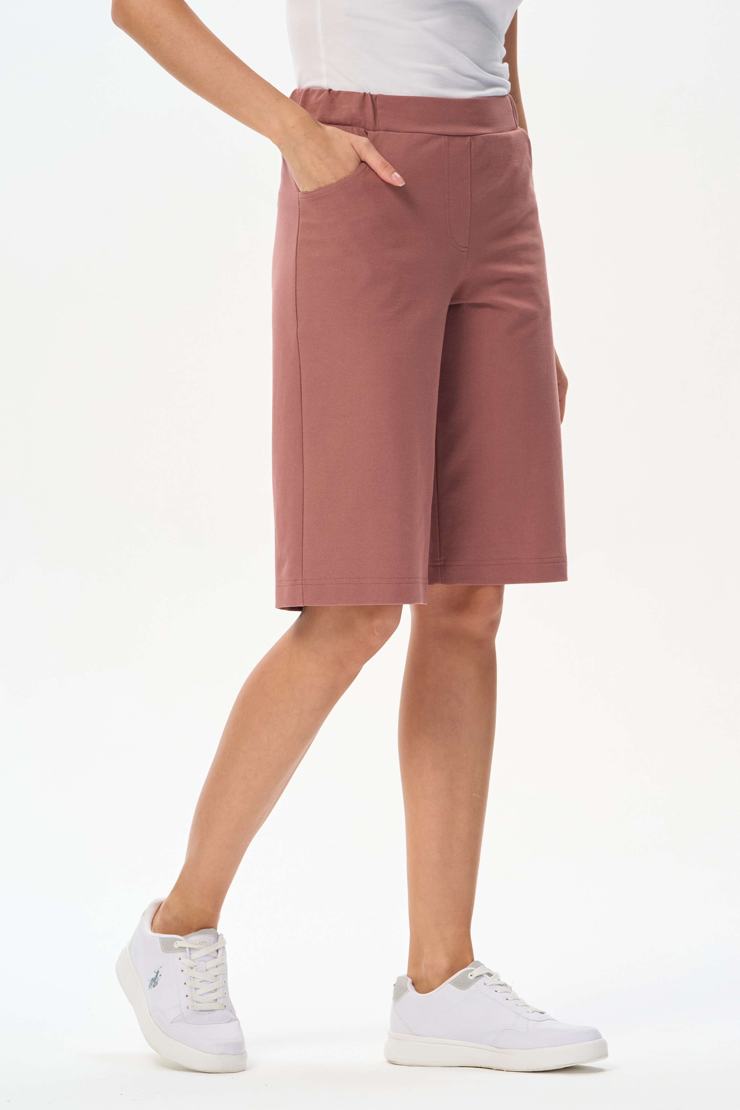 80% хлопок, 14% полиэстер, 6% эластан Прямые шорты с карманами из хлопковой трикотажной джинсы. Пояс с планкой и эластичной лентой внутри. Рост модели 175 см.