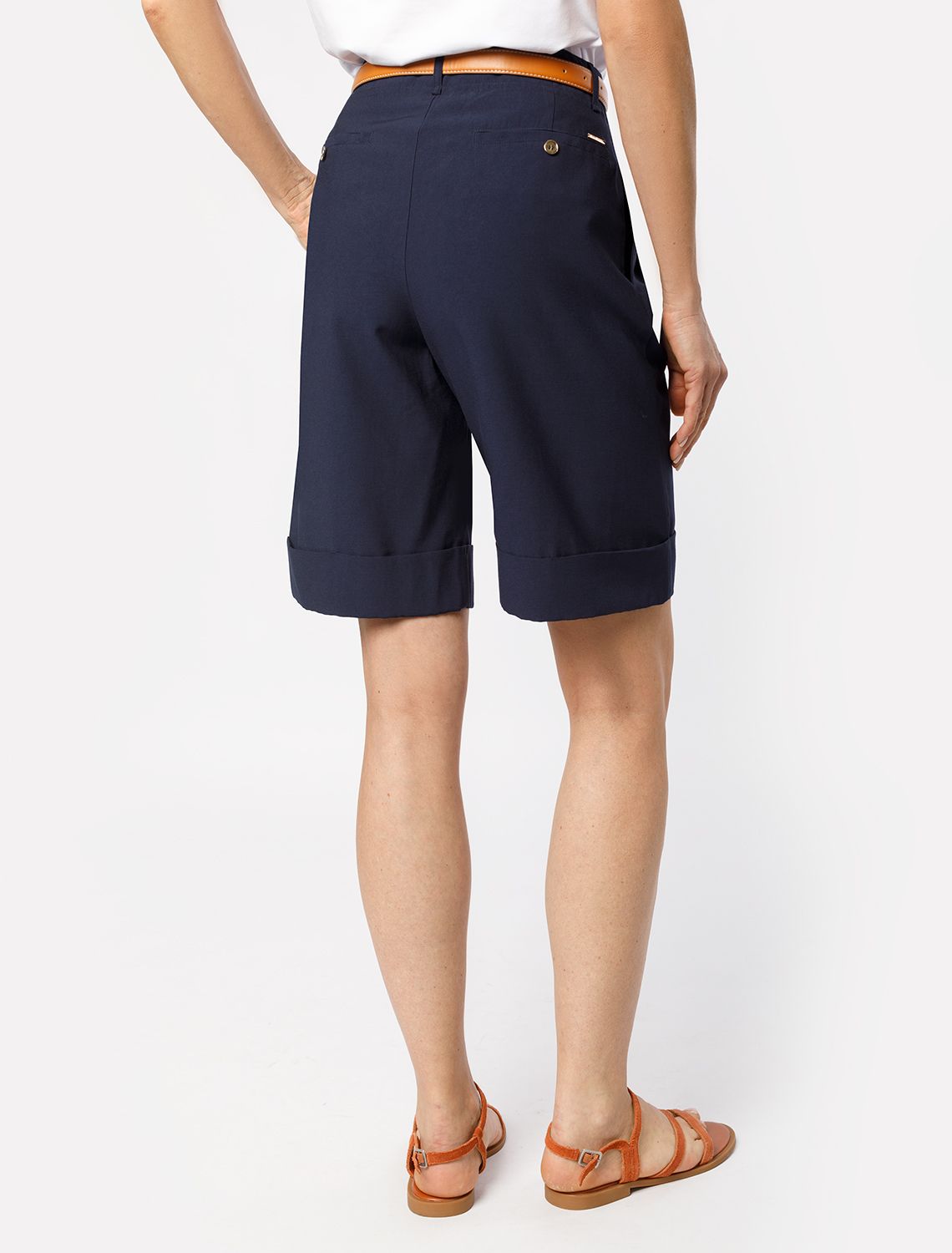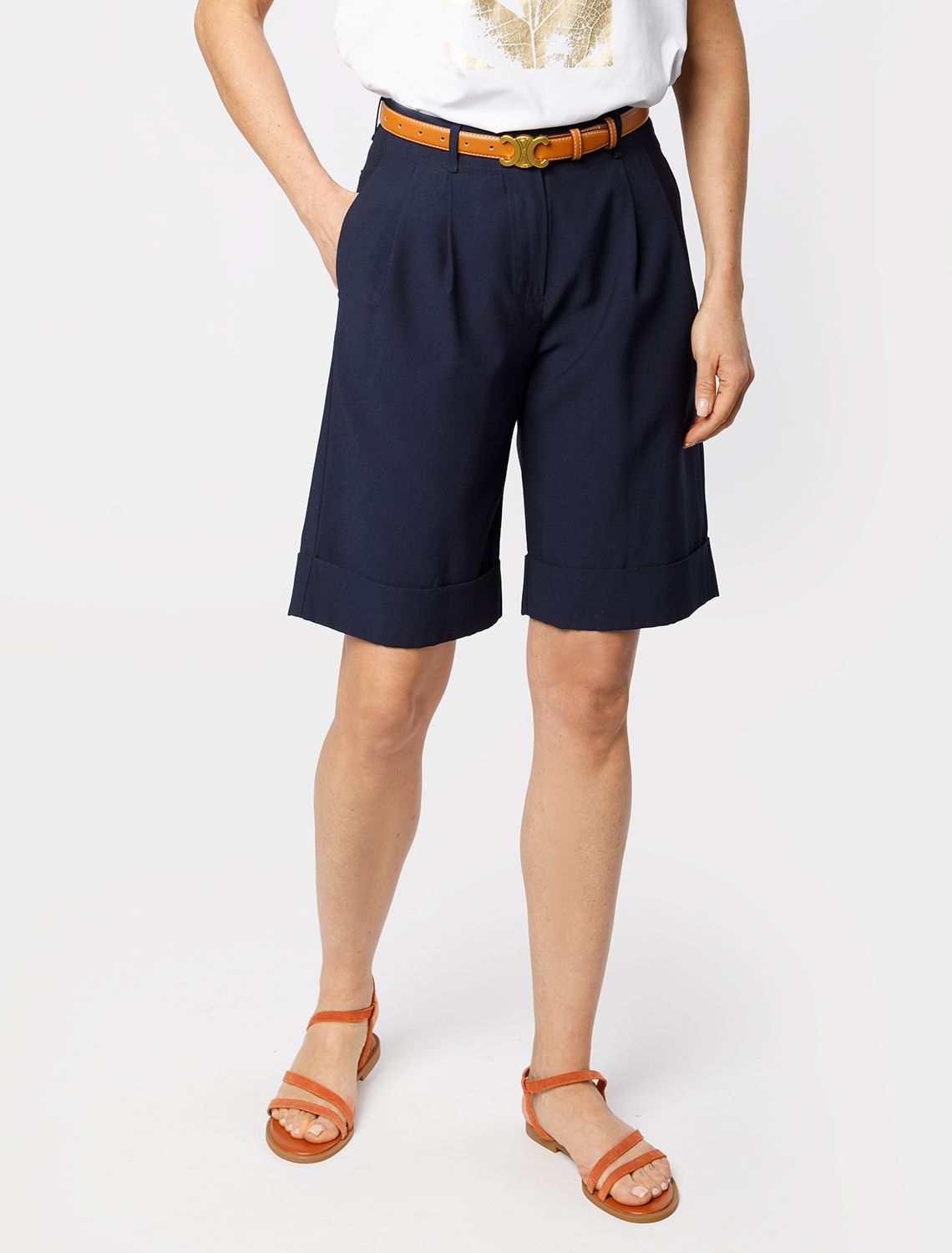 Шорты-бермуды выполнены из плотного лиоцелла. Модель дополнена карманами и поясом со щлевками под ремень. Ткань изделия отлично держит форму, плавно драпируется и не просвечивает. В теплое время года приятно охлаждает кожу. Добавление синтетических волокон в составе изделия, предотвращает сминаемостьи поддерживает формоустойчивость. Брюки сочетаются в костюме с топом D23.063 и блузкой D29.266, D29.267 и жилетом D27.002