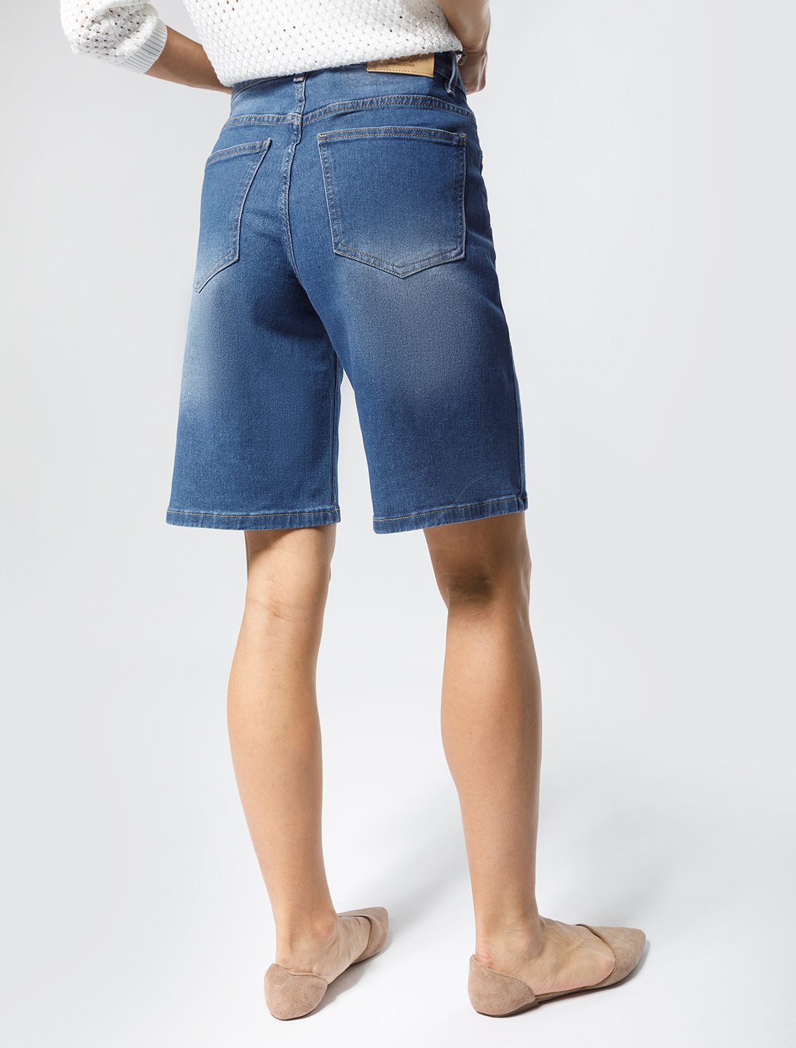 Шорты выполнены из эластичного денима. Комфортная длина подходит для любой фигуры. Мягкая прочная ткань хорошо пропускает воздух, а изделия из нее не растягиваются и надолго сохраняют заданную форму. Лучшая альтернатива джинсам в жаркое время года.