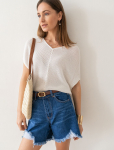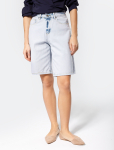 Шорты с легкой декоративной стиркой выполнены из эластичного денима. Модель с ложным гульфиком и поясом из эластичной резинки со шнурком из основного полотна. За счет эластана изделие хорошо тянется и гарантирует комфорт и формоустойчивость. Подходит для любой фигуры.