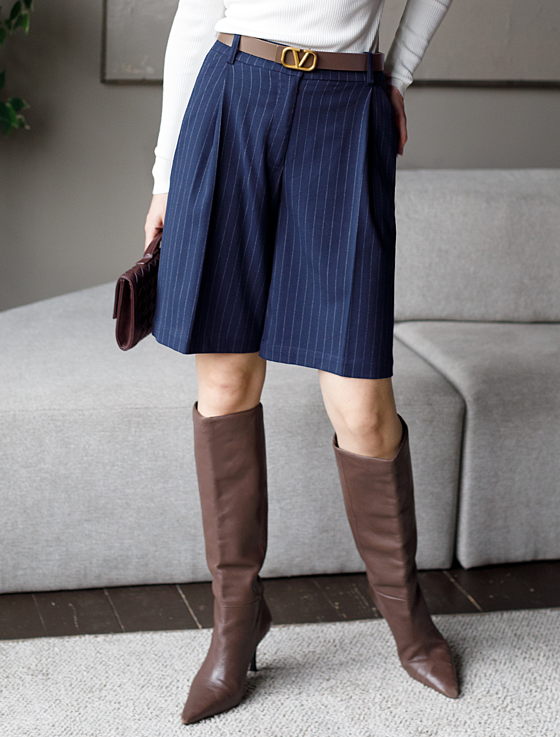Шорты-бермуды выполнены из костюмной ткани в полоску. Модель свободного кроя дополнена боковыми и задними карманами. Изделие не сковывает движений и подходит для любого типа фигуры. Сочетается в костюме с жилетом D27.001 65%ПЭ 33%Вис 2%ПУ