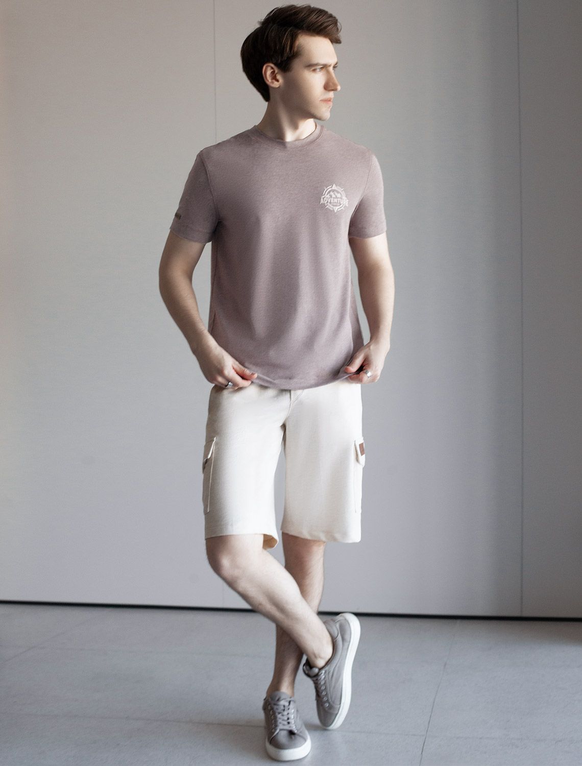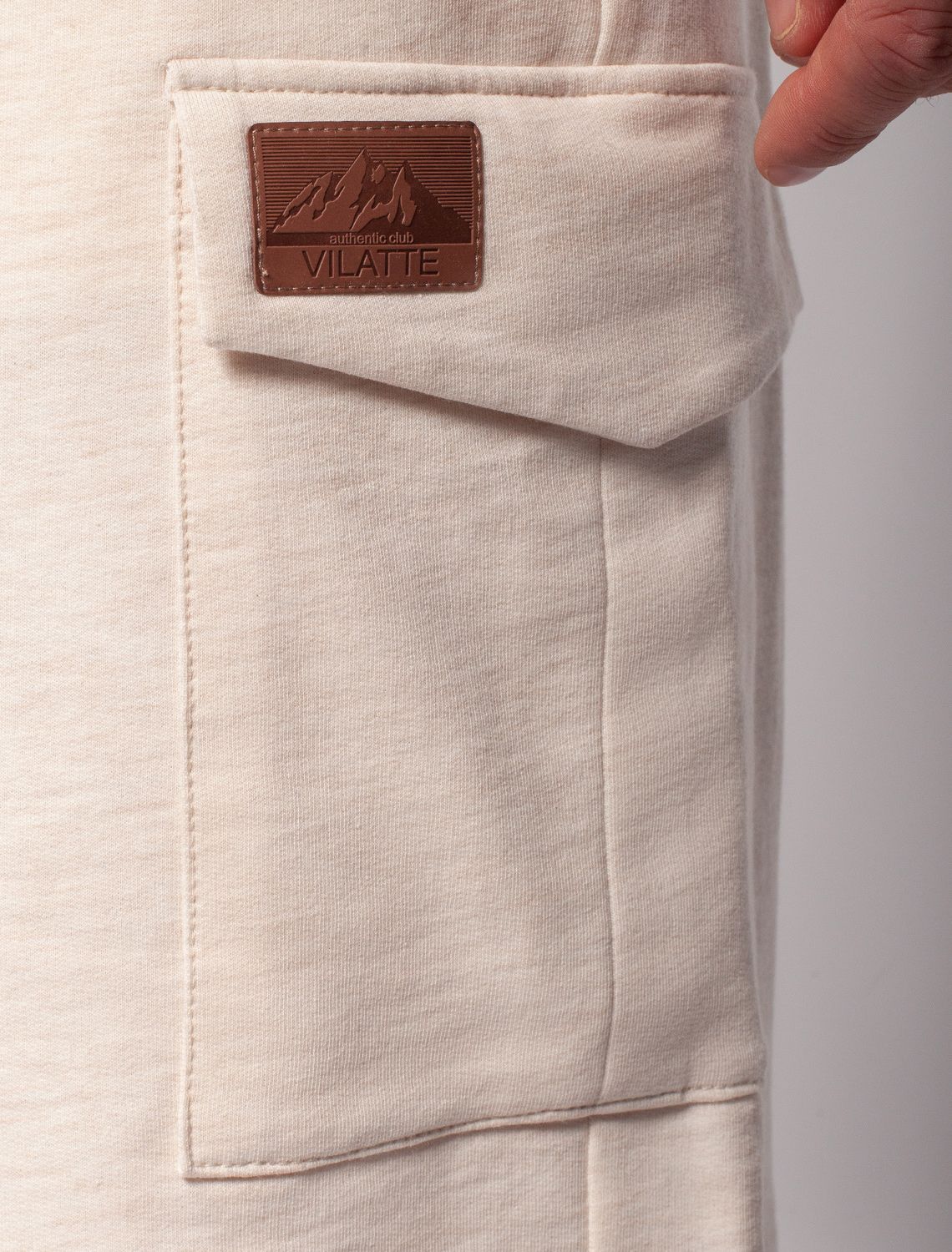 Шорты выполнены из легкого футера с эластаном. Мягкий материал хорошо пропускает воздух и поддерживает оптимальный микроклимат даже в жаркое время года, поэтому в изделии будет комфортно в течении всего дня. На кармане нашивка логотип бренда из эко-кожи. бежевый меланж