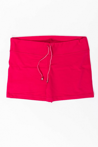 Женские шорты выполнены из футер петли ярких расцветок. Силуэт облегающий, пояс широкий со шнурком. Без карманов.