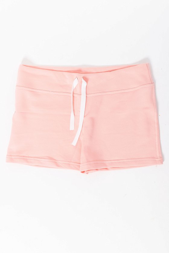 Женские шорты выполнены из футер петли ярких расцветок. Силуэт облегающий, пояс широкий со шнурком. Без карманов.
