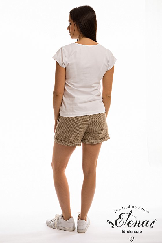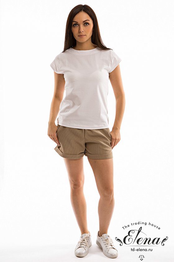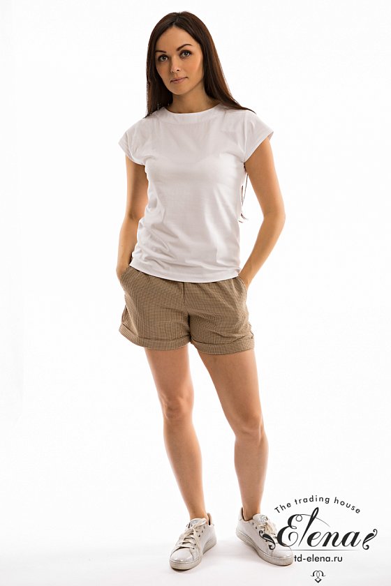 Шорты выполнены из искусственного льняного полотна. Пояс с резиной внутри. В боковых швах имеются карманы. Снизу шорты оформлены отворотами.