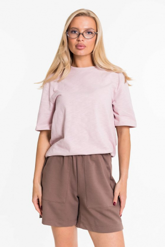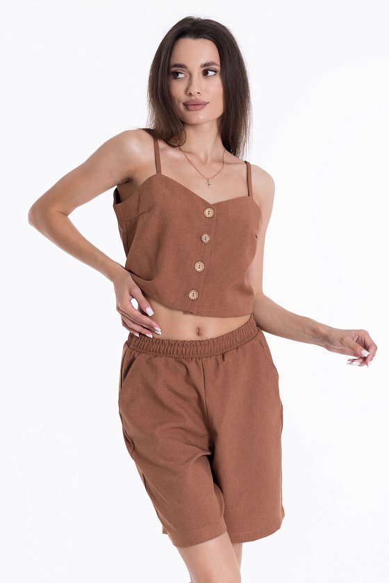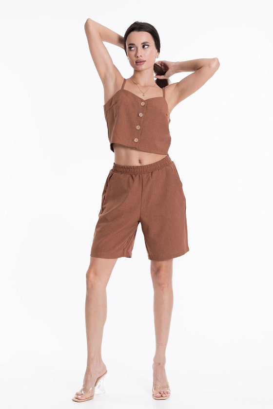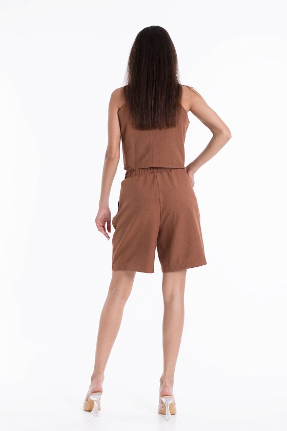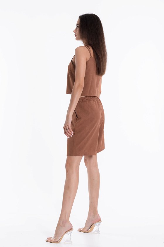 Шорты из полотна "искусственный лен". Удлиненные, пояс на резинке, боковые карманы.