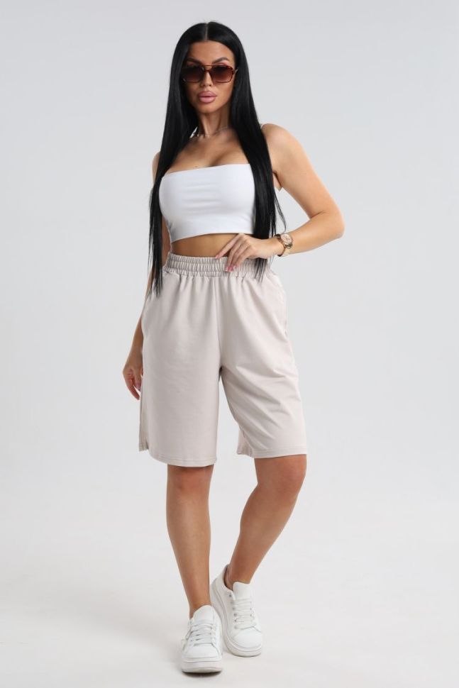 Ткань: футер 2-х нитка; Состав: 72% хлопок, 20% п/э, 8% эластан; Сезонность: лето; Стиль: молодежный, повседневный; Застежка: без застежки; Карман: с карманами; Производство: г. Иваново, швейное производство НАТАЛИ; Тип изделия: шорты; Цвет: бежевый