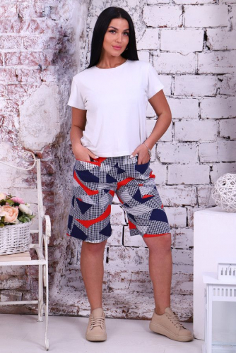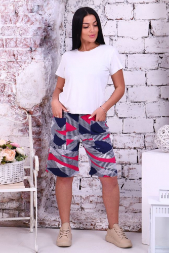 Шорты женские из интерлока. Шорты длиной выше колена, на притачном поясе с накладными карманами.
