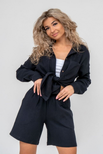 Модные женские шорты - бермуды с завышенной линией талии выполнены из легкого струящегося двухслойного муслина с жатой структурой. Одежда из ткани муслин - это новинка и тренд сезона. Пояс шорт выполнен на специализированной поясной машине, что добавляет изделию большую износостойкость и эстетический внешний вид. По бокам, для удобства, расположены вместительные карманы. Изделие из муслина имеет много положительных качеств: нежность и лёгкость, высокая прочность, воздухопроницаемость. Легкие хлопковые шорты с высокой посадкой создадут модный образ для любой девушки. С шортами из муслина Вы создадите себе, как спортивный или повседневный образ на выход, так и универсальный вариант для дома и сна. Стирать муслиновые вещи нужно только в тёплой воде при температуре не выше 40С.