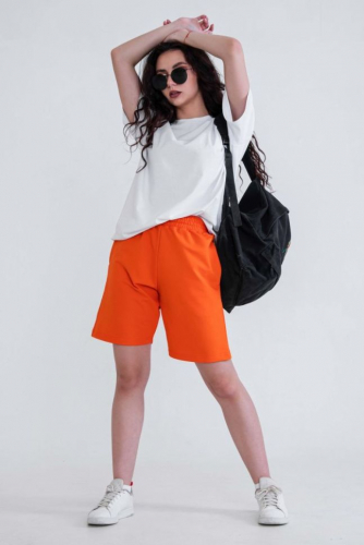Шорты прямые, на поясе, с боковыми карманами. Боковые вставки пояса выполнены из кашкорсе с лампасами.