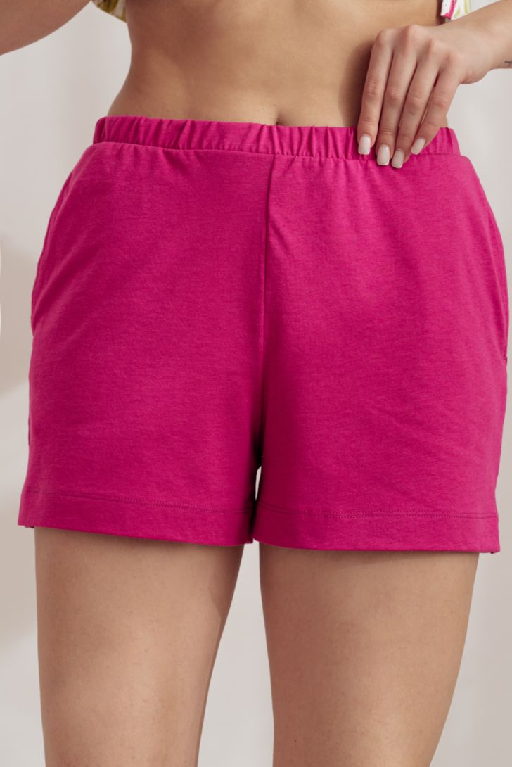 Шорты на резинке свободного кроя, укороченные. В боковых швах функциональные карманы и декоративные разрезы. Шорты миксуются с любыми топами и футболками данной коллекции, а так же с любыми футболками basic от almando melado. Модель представленна в трех цветовых решениях. Фуксия