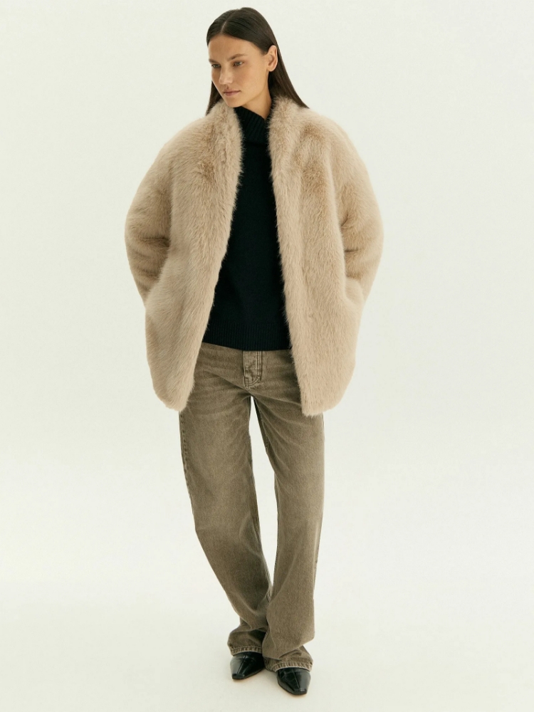 Роскошная шуба из мягкого экомеха премиального качества, на гладкой подкладке молочного цвета. Рассчитана на температуры около -5°C. Мех имеет очень приятный длинный ворс, создаёт элегантный образ с ощущением уюта и тепла. Изделие застёгивается на удобные крючки. Носить шубу можно как с роскошными платьями, так и с повседневными образами