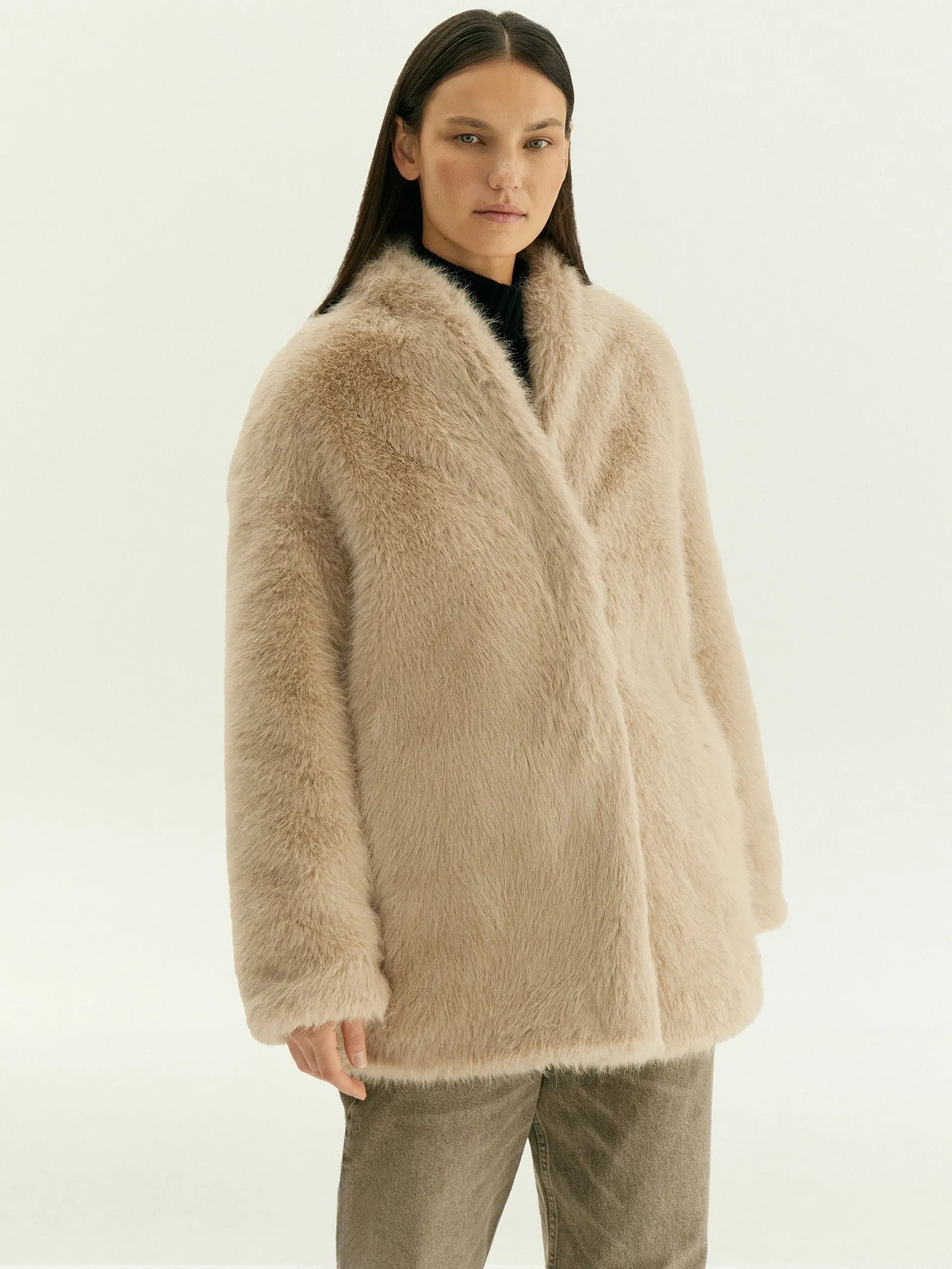 Роскошная шуба из мягкого экомеха премиального качества, на гладкой подкладке молочного цвета. Рассчитана на температуры около -5°C. Мех имеет очень приятный длинный ворс, создаёт элегантный образ с ощущением уюта и тепла. Изделие застёгивается на удобные крючки. Носить шубу можно как с роскошными платьями, так и с повседневными образами.