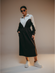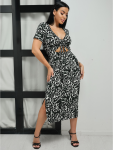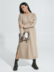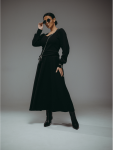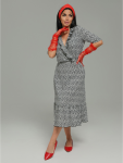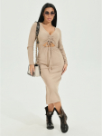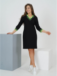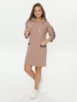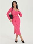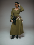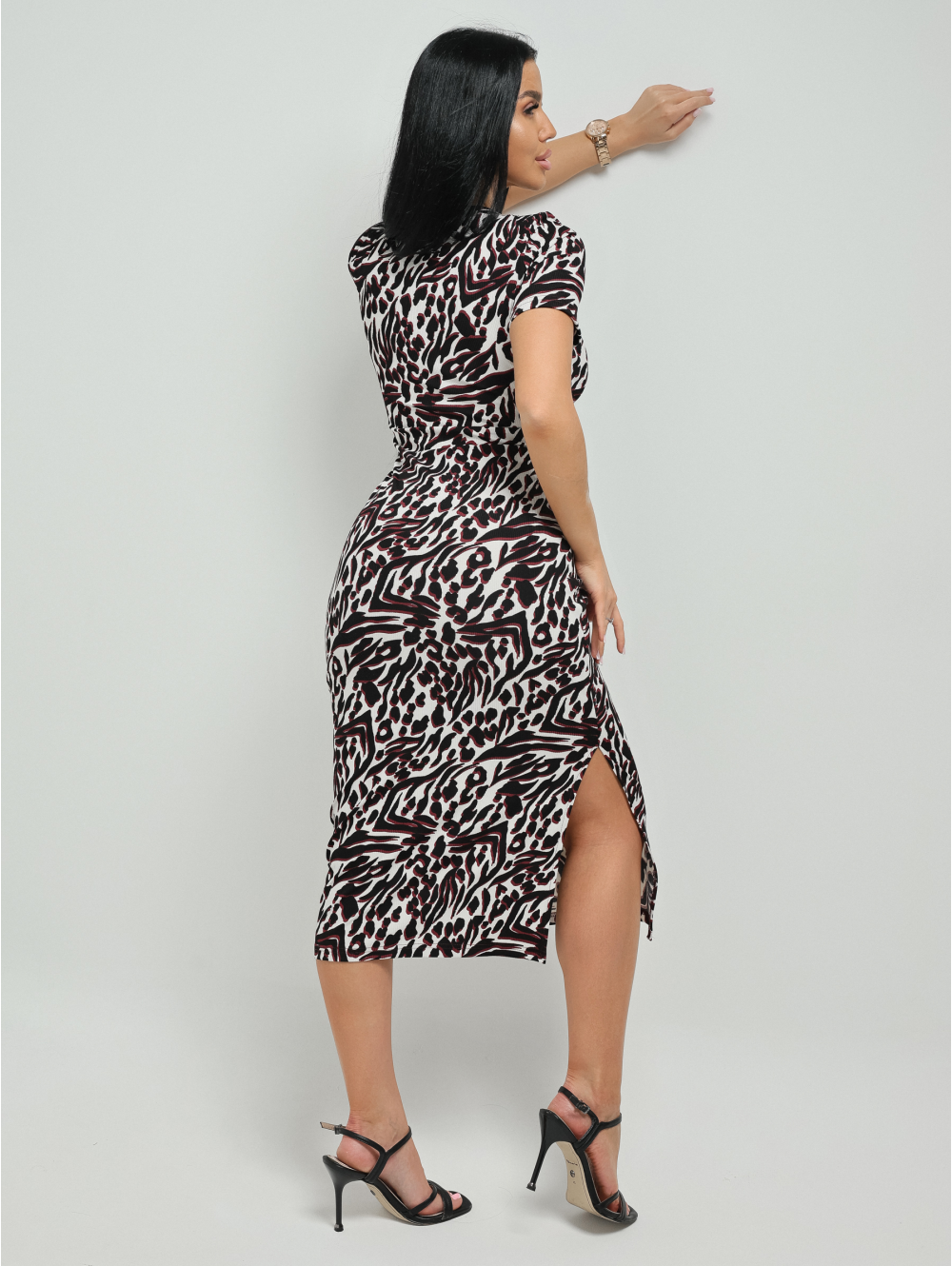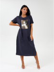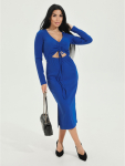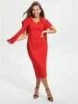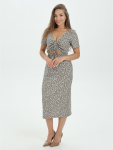 Платье миди, приталенное, отрезное по талии с коротким, втачным рукавом, с шнурками из основного материала.